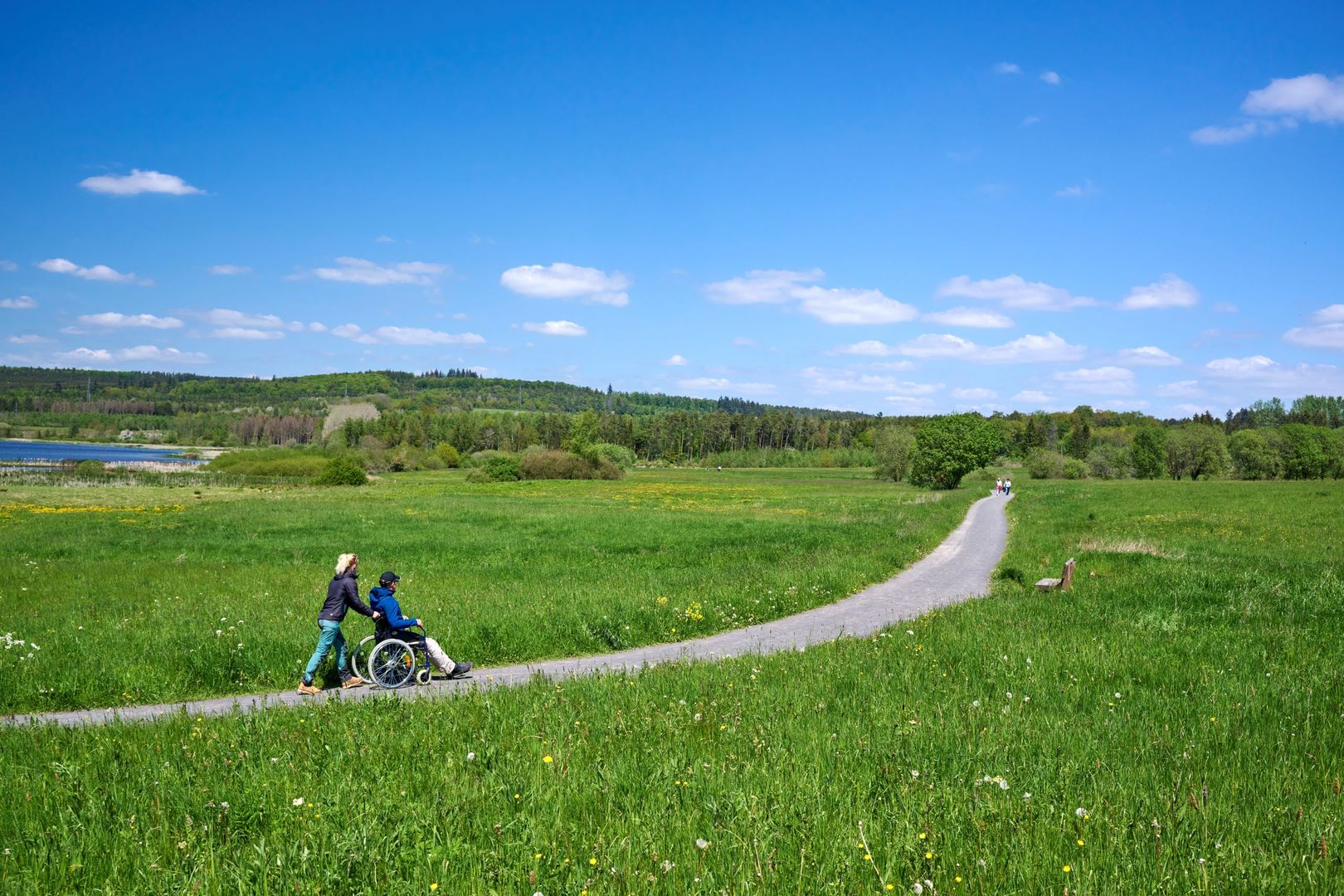 Dieser barrierefreie Rundweg ermöglicht einen entspannten Spaziergang durch die malerische Natur der Eifel. Umgeben vom natürlichen Charme des Jungferweihers lädt er zum erholsamen Verweilen ein.