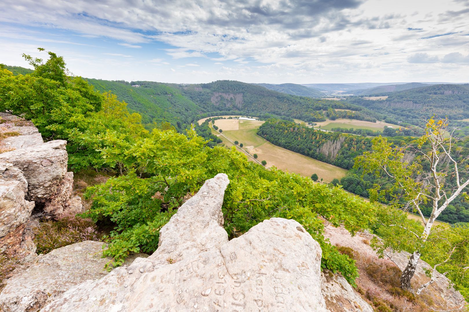 Vor rund 220 Mio. Jahren herrschte in der Eifel ein Wüstenklima vor, geprägt von großer Trockenheit und seltenen, aber umso heftigeren Regenfällen. Diese spülten rotgefärbte Sande und Steine in die weitverzweigten Flüsse. Die Ablagerungen der Flüsse verfestigten sich zusammen mit Sanddünen zum Buntsandstein. Viel später begann dann die Rur sich beharrlich und mit viel Geduld tief in den Gebirgsrumpf einzuschneiden. Es entstanden die beeindruckenden Felsen, die heute auf der Buntsandsteinroute erwandert werden können.