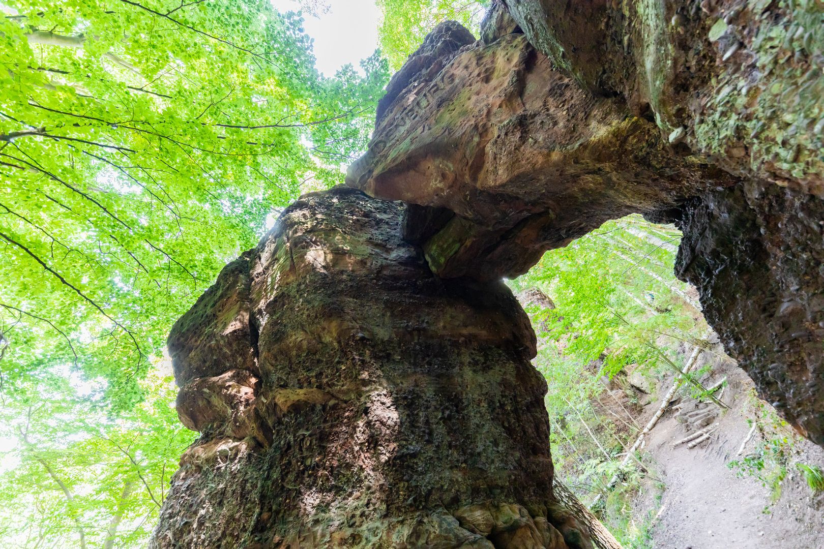 Die Buntsandsteinfelsen bergen eine natürliche Felssturzgefahr. Bitte halten sie Abstand von den Absturzkanten und halten sie sich nicht unterhalb der Felswände auf. Beachten Sie Warnschilder und Anweisungen, um Unfälle zu vermeiden und die Natur zu schützen.
