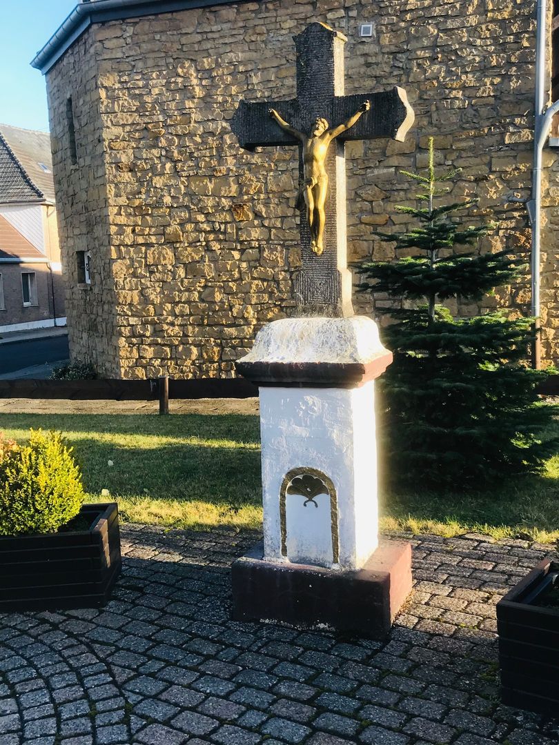 In Berg können Spaziergänger wahrhaft „Hochgefühle“ erleben. Dafür sorgt die herrliche Lage am Rande des Nideggener Hochplateaus. Rund 700 Berg-Bewohner genießen diesen natürlichen Luxus täglich. Kurz sind die Wege zu faszinierenden Aussichtspunkten, ob steil bergab ins Tal der Rur oder weithin bis zum Siebengebirge. Die erhabene Lage imponierte schon Kelten und Römern, die im nahen Badewald Erz abbauten. Auch den Franken gefiel die Höhenluft, was Gräberfunde am „Breidel“ belegen. Dass zudem die Nibelungen hier heimisch waren und sich die Berger als direkte Nachfahren des kühnen Drachentöters Siegfried fühlen dürfen, fällt vermutlich eher ins Reich der Heldenepik. Während der Dorfspaziergang Sie zur eindrucksvollen Clemens-Kirche, zu Bildstöcken und baulichen Schmuckstücken führt, sollte eines nicht vergessen sein: Nur einen Kilometer entfernt, liegt im Tal des Thuirbaches der ländliche und äußerst beschauliche Weiler Thuir. Mit ihm bildet Berg schon seit langer Zeit eine Doppelgemeinde. Ein Duett, dass bei aller Unterschiedlichkeit bestens funktioniert. Gönnen Sie sich einen Spaziergang hinab, durch Felder, auf denen nicht selten die berühmte Eifler Braugerste wächst. Entdecken Sie den Orchideenreichtum der naheliegenden Muschelkalkkuppen oder beobachten Sie auf den Streuobstwiesen mit etwas Glück einen der hier wieder zahlreich beheimateten Steinkäuze. Berg- Thuir – eine Dorfgemeinschaft mit herrlichen Höhen und Tiefen.