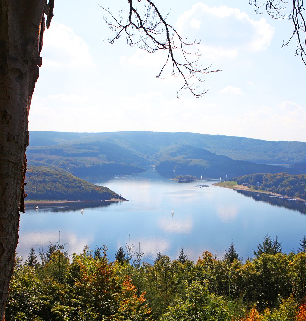 Der 14,1 km lange Rundwanderweg führt dich in gut vier Stunden entlang des Rurseeufers, durch das Örtchen Schmidt und zurück durch den Nationalpark Eifel. Dabei hast du einen sagenhaften Blick auf die Rurtalsperre Schwammenauel. Am Stausee liegt ein Wasserkraftwerk, welches zu Stromerzeugung genutzt wird. Das Kraftwerk leistet eine Jahresarbeit von fast 25 Mio. Kilowattstunden. Der See hat eine Fläche von 780 Hektar und gehört mit seinem Fassungsvermögen von 203 Mio. m3 zu den größten Stauseen Deutschlands. Erwischst du bei deiner Wanderung eine Niedrigwasserphase des Stausees, kannst du den schroffen Schieferabhang sehen, der dem Rundwanderweg auch seinen Namen „Steilküste“ gibt.