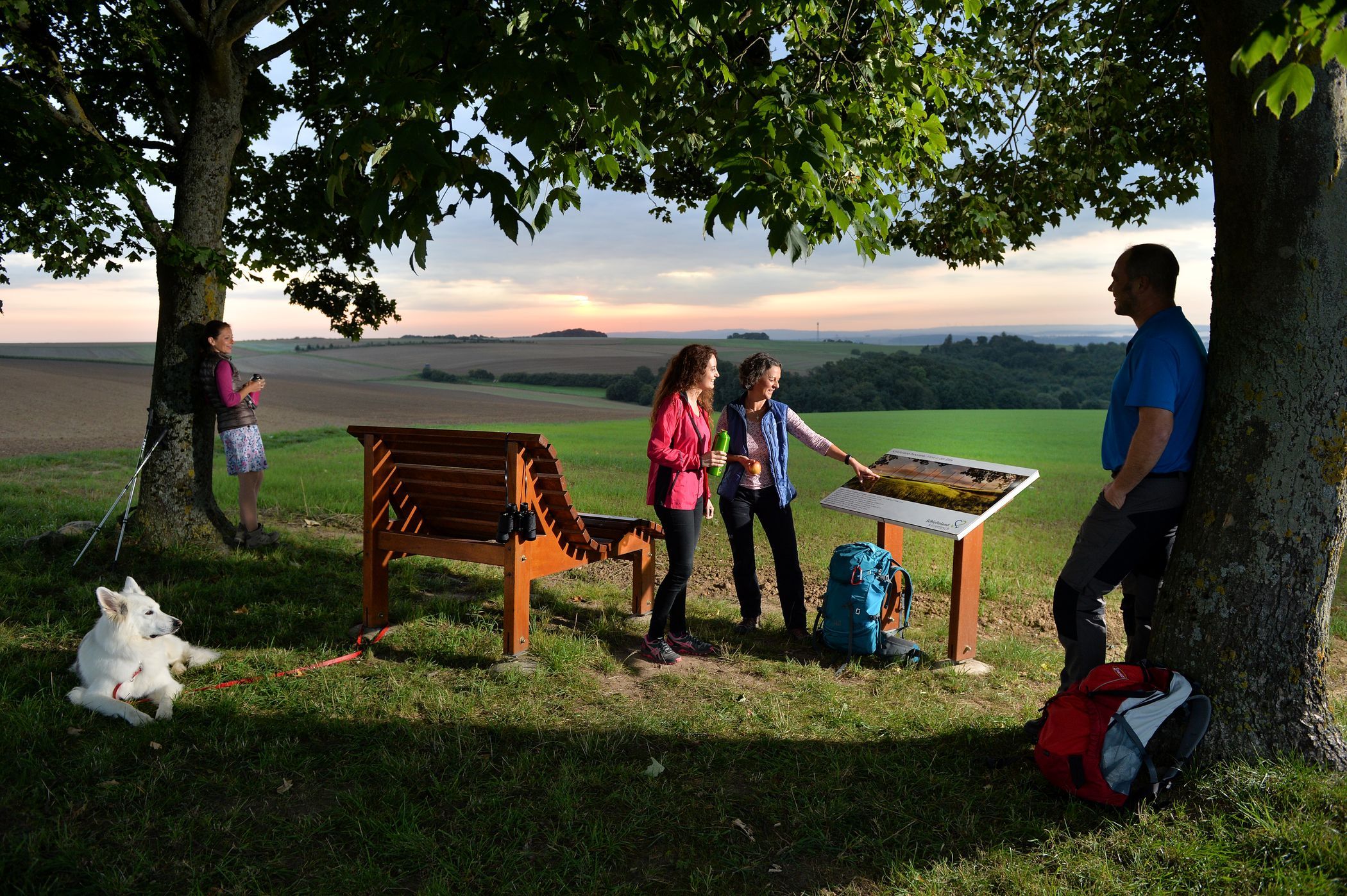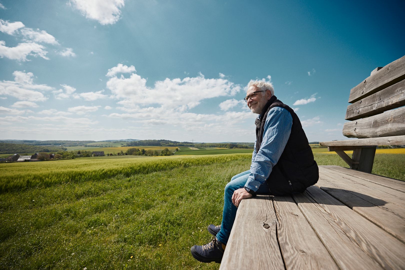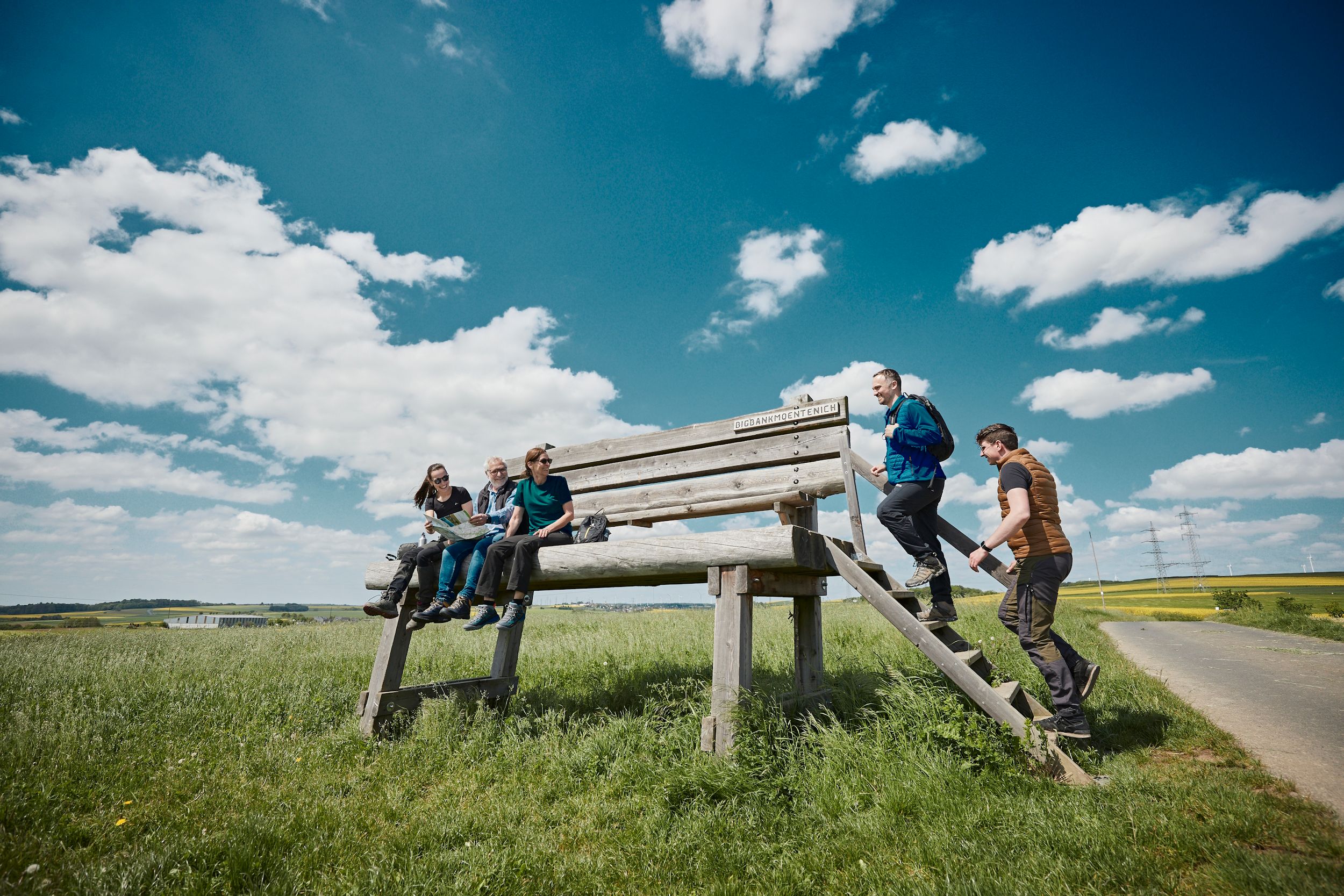 Der Wanderweg verbindet mehrere Orte im Schieferland Kaisersesch miteinander und hält spektakuläre Ausblicke sowie naturbelassene Pfade für Sie bereit. Ein weiteres Highlight der Wanderroute ist die Kulm – ein von weiten Feldern umgebener Aussichtspunkt (409 m). Der Blick reicht bei klarem Wetter bis in den Hunsrück. Beeindruckend ist auch der Weitblick ins Maifeld, vor allem wenn der Raps blüht. In Gamlen bietet der Brodhübel eine ideale Möglichkeit, um eine Rast mit einem kleinen Picknick einzulegen. Eine weitere Attraktion auf der ,,Route Pyrmont“ ist die XXL-Bank in Möntenich. Fühlen Sie sich für einen kurzen Augenblick ganz groß und erleben Sie einen wunderschönen Weitblick ins Maifeld. Nehmen Sie Platz und lassen Sie die Beine baumeln.