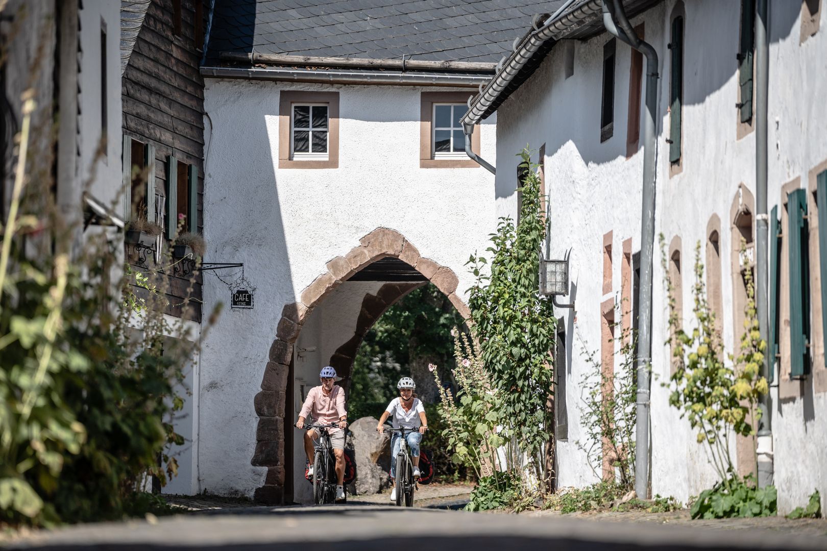 Bei dieser Radtour in der Eifel gibt es die Möglichkeit, verschiedene Freizeitaktivitäten miteinander zu kombinieren. Man kann durch die Eifellandschaft radeln oder Sightseeing im historischen Ort Kronenburg erleben. Vieles ist möglich!
