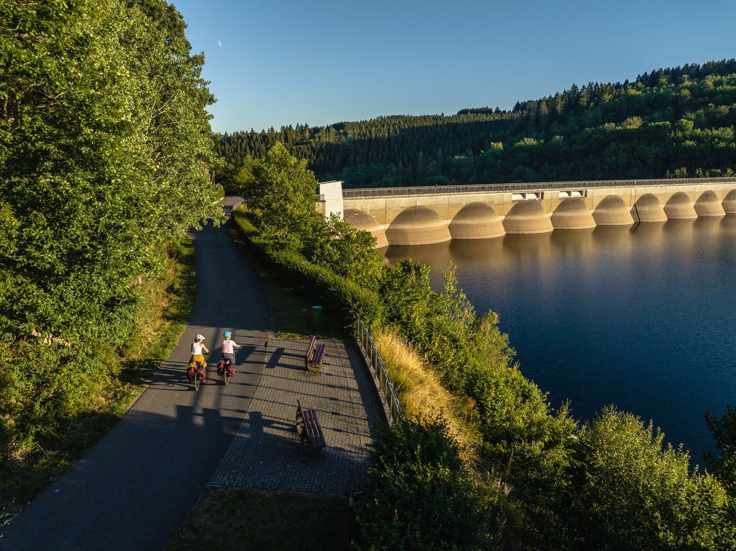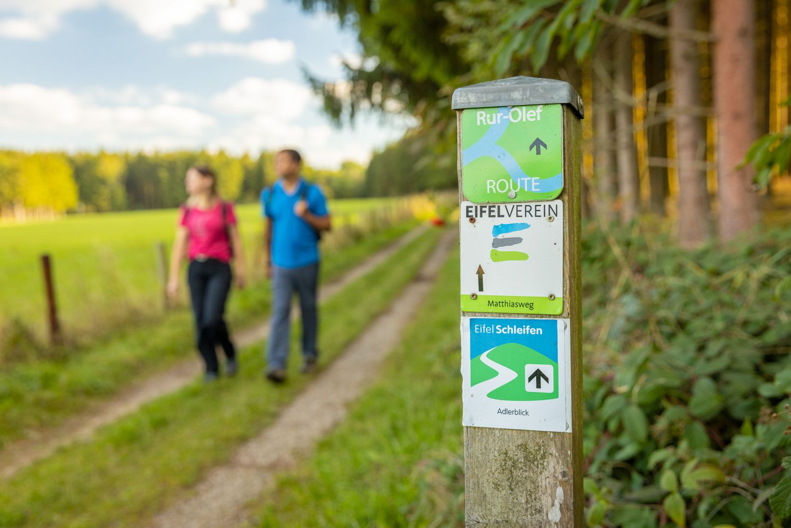 Die Wanderung startet mit dem "Erklimmen" der Oleftalsperre. Belohnung sind traumhafte Ausblicke über den Stausee und die umliegenden Hügellandschaften der Eifel und dem Oleftal. Die Oleftalsperre dient dem Schutz der umliegenden Gemeinden vor Hochwasser und der Trinkwassergewinnung. Sie wurde Mitte der 1950er Jahre erbaut, die Mauer hat durch die sogenannte Pfeilerzellenbauweise eine einzigartige Optik. Die Umgebung der Talsperre ist durch Erlengaleriewälder, Hochstaudenfluren und Bärwurzwiesen geprägt.