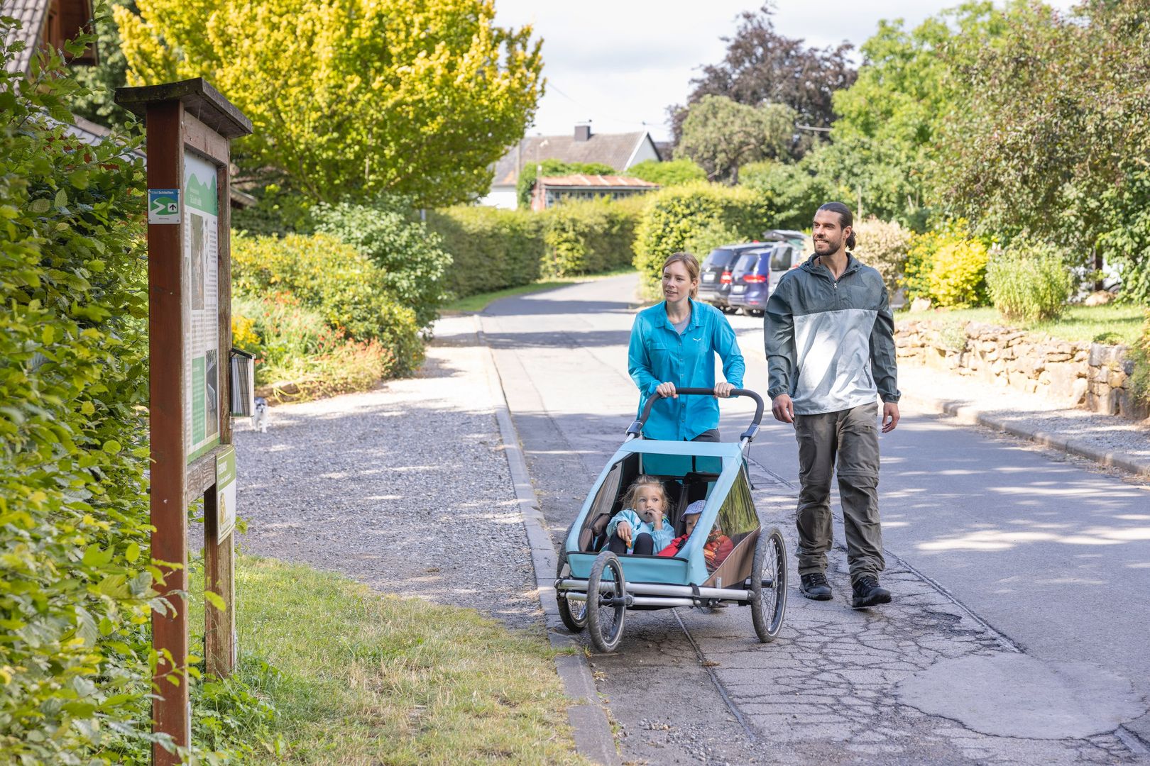 Mit einem geländegängigen Kinderwagen können auch die Kinder die EifelSchleife mitwandern. Ab dem Kloster Steinfeld empfiehlt es sich hier, in entgegengesetzter Richtung zu starten – dann ist der Weg mit Kinderwagen noch leichter befahrbar.