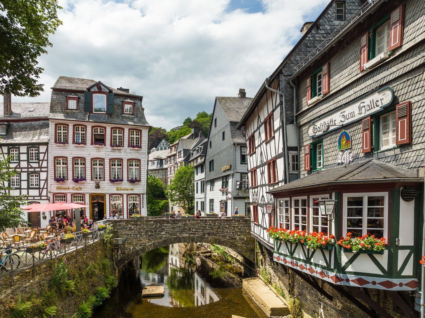 Gestärkt geht es weiter zum Ziel dieser Eifelsteig-Etappe: Die Tuchmacherstadt Monschau. Romantische Fachwerkhäuser empfangen Dich in der historischen Altstadt. Du lässt Dich treiben und erliegst den Genüssen in den kleinen Cafés und Restaurants. Eine Spezialität sind die "Monschauer Dütchen" - definitiv etwas für Liebhaber des Süßen. Sogar eine Senfmühle (mit Senf-Restaurant) gibt es hier und eine Kaffee-Rösterei. Nach kurzer Zeit erfasst Dich der Zauber von Monschau und denkst glücklich an Deine Wanderung zurück.
