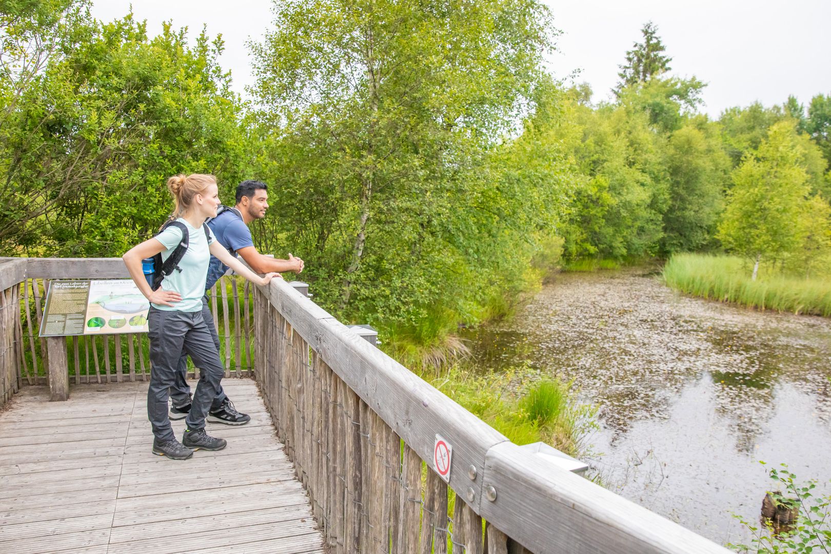Zugegeben, es gibt spannendere Wegabschnitte, aber Du möchtest der Natur ihren Schutz lassen. Zudem steigt im Sommer die Brandgefahr im Venn, so ist es auch für Dich sicherer hier. Du gehst gelassen weiter. Schließlich hat es auch einen weiteren positiven Nebeneffekt: Es ist genügend Platz um nebeneinander zu gehen und zu plaudern.