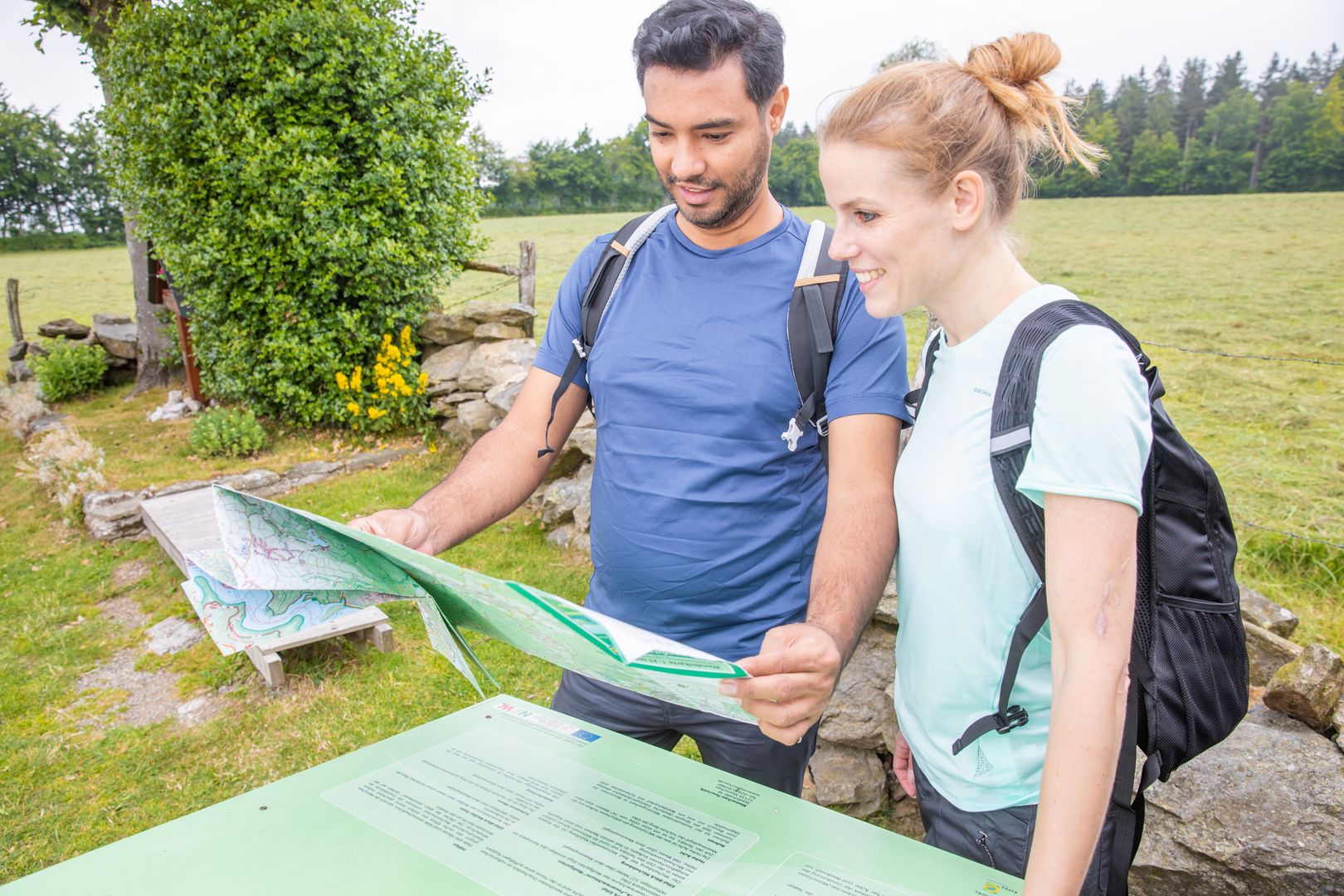 Gleich zu Beginn dieser Etappe betrittst Du einen spannenden Grenzbereich: Du startest Deine Wanderung und überquerst in Roetgen die Trasse der alten Vennbahn, die zu Belgien gehört. Dahinter bist Du wieder in Deutschland. Genauer gesagt in einer deutschen Exklave - denn Belgien umgibt diesen Teil von Roetgen komplett. Der Wechsel zwischen Deutschland und Belgien begleitet Dich auf dieser Etappe. Doch die Staatsgrenze ist heute nicht mehr zu spüren - einzig die wechselnde Eifelsteig-Markierung macht sie sichtbar. In Deutschland zeigt Dir das Eifelsteig-Logo den Weg, in Belgien ist es ein gelb-grüner Balken. Für die Menschen hier ist das ständige Hin und Her zwischen den Ländern ganz normal - vielleicht sind sie auch deshalb besonders offen und ausgeglichen.