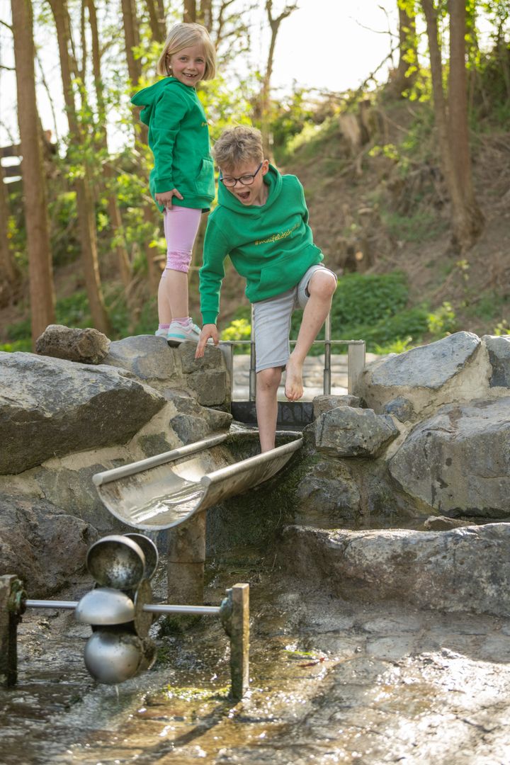 Pause muss man auf diesem Weg noch keine einlegen, in dreieinhalb Kilometern ist man schon in Mertloch angekommen. Hier locken ein Spielplatz, Weidentipis, Schaukeln und ein Klettergerüst. Ein kleines Stückchen weiter, vorbei an zwei spannenden Tafeln zur Landwirtschaft und zum Getreide auf dem Maifeld, ist dann auch noch der Wasserspielplatz! Hier gibt’s eine große Rutsche, Spielgeräte für die ganz Kleinen und auch die Möglichkeit, die Füße zu erfrischen. Ein tolles Ziel für eine kleine Radrunde! Am Streckenhäuschen kann man sich mit einem Eis oder Kaffee belohnen oder an den Spielplätzen auf den Bänken ein Picknick machen.