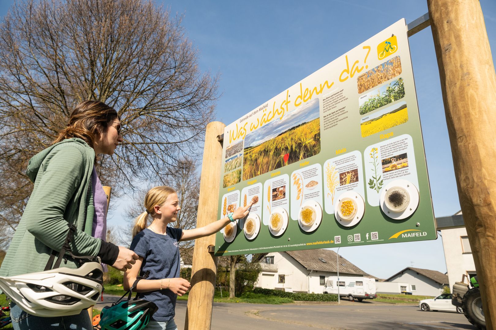 Der Weg ist durch das Logo Maifeld-Radweg gekennzeichnet.