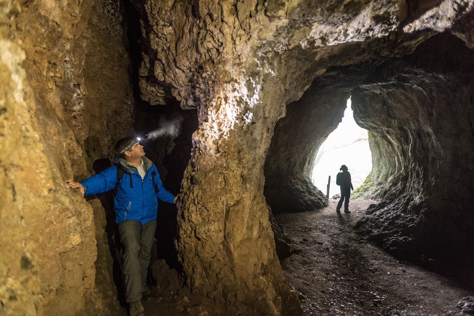 Weiter geht es durch einen Wald wie aus einem Märchen, über Treppen aus Baumwurzeln, entlang meterhoher Felswände mit Moos in allen Schattierungen und alten Buchen zur Buchenlochhöhle. Eine steile Holztreppe führt zu ihr hinauf. Sie ist 30 Meter lang und bis zu vier Meter hoch. Bereits Neandertaler nutzten sie als Unterschlupf.
