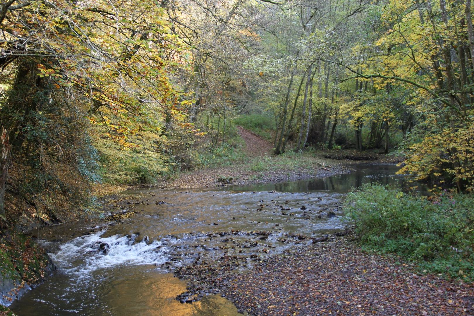 Der Grafschaft-Pfad mit Start in der Burgenstadt Manderscheid verläuft zum Teil auf Eifelsteig und Lieserpfad und führt durch die Ortschaften Pantenburg und Laufeld. Auf schmalen Pfaden und entlang von hochaufragenden Felsen geht es vorbei an einigen Hütten mit Ausblicken hinab zum Burgweiher und zur Lieser. Aus dem Tal geht es durch lichten Wald teilweise steil, teilweise moderat hinauf auf die Höhe bis nach Pantenburg. Von hier öffnet sich der Blick wieder auf die Manderscheider Burgen. Auf der Höhe führt der Weg teilweise über Schotterwege durch offenes Gelände und entlang von Wiesen bis nach Laufeld. Doch schon bald geht es wieder hinab zum Tal des Falbachs, vorbei an einem interessanten geologischen Aufschluss. Außer dem munteren Plätschern des Baches und Vogelgezwitscher ist hier kaum etwas zu hören. Pure Waldeinsamkeit. Der Falbach mündet in die Lieser und so folgt man nun der Lieser auf ihrem Weg zurück bis nach Manderscheid.