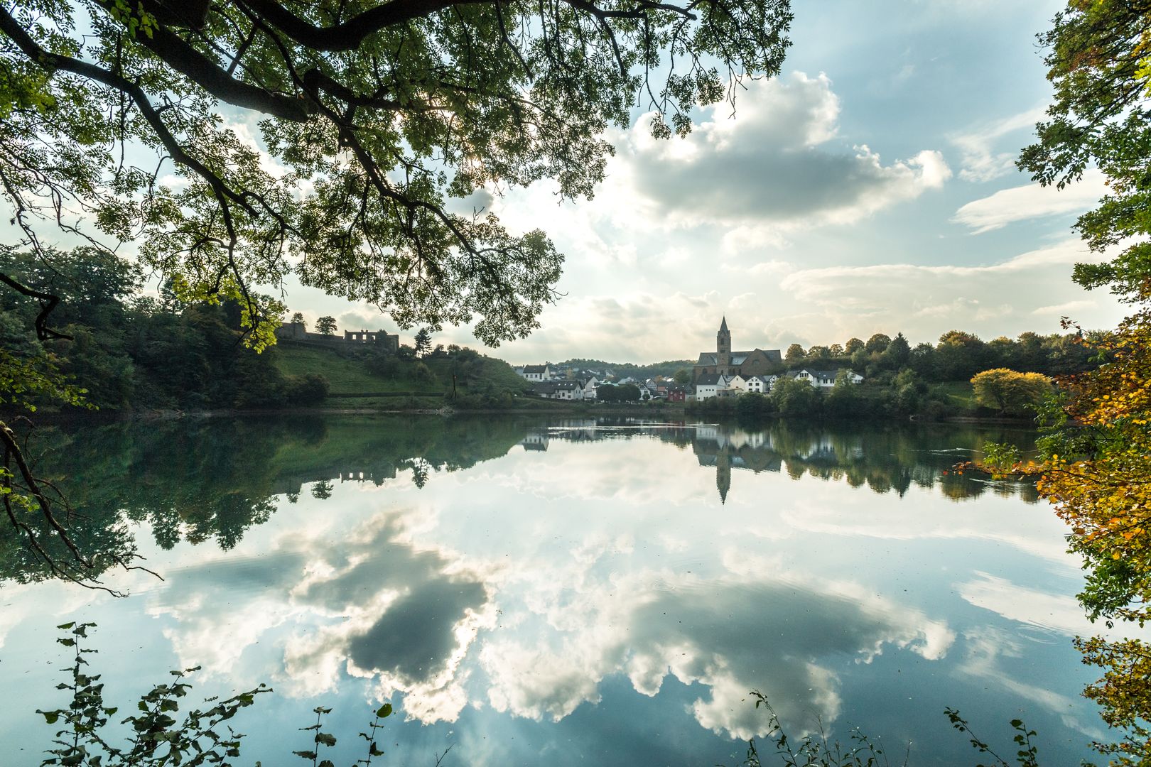 Du startest Mitten in Ulmen. Schon nach kurzer Zeit lässt du das historische Städtchen hinter dir und tauchst in die Natur rund um Ulmen ein. Durch ein Waldstück führt der Weg dich zunächst zum idyllischen Eifelort Meiserich. Danach empfängt dich das ursprüngliche Tal des Üssbach. Du kommst an zwei ehemaligen Mühlen vorbei: Die Maismühle und die Auderather Mühle liegen direkt am Weg. Die abgeschiedene Umgebung des Nollenbachs zwischen den beiden Mühlen wird dich mit ihrer Ruhe und unberührten Natur in ihren Bann ziehen. Zurück in Ulmen, darfst du dir einen Besuch des Maar-Stollens nicht entgehen lassen.