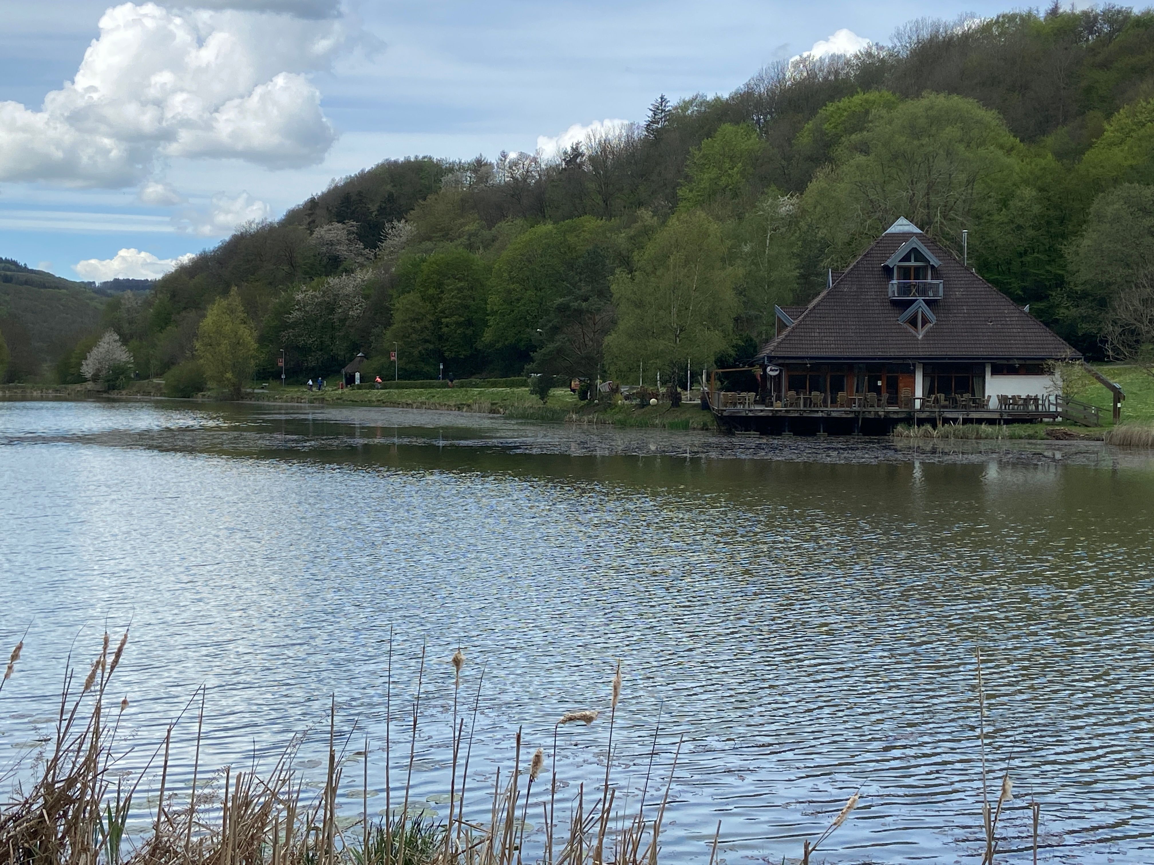 Die Fahrt in zu den Höhen der Eifel beginnt mit einer längeren Passage am Perler Bach aufwärts. Der höchste Berg der Eifel, die Hohe Acht, ist vom Fernsehturm Schöneberg nicht mehr weit entfernt und in Sichtweite. Rasante Abfahrten und Aufstiege führen zum Steinerberghaus oberhalb von Kesseling und weiter nach Ramersbach. Von einigen Aussichten ist nun die Burg Olbrück zu erblicken und die anstrengende Eifel Schleife neigt sich dem Ende zu.