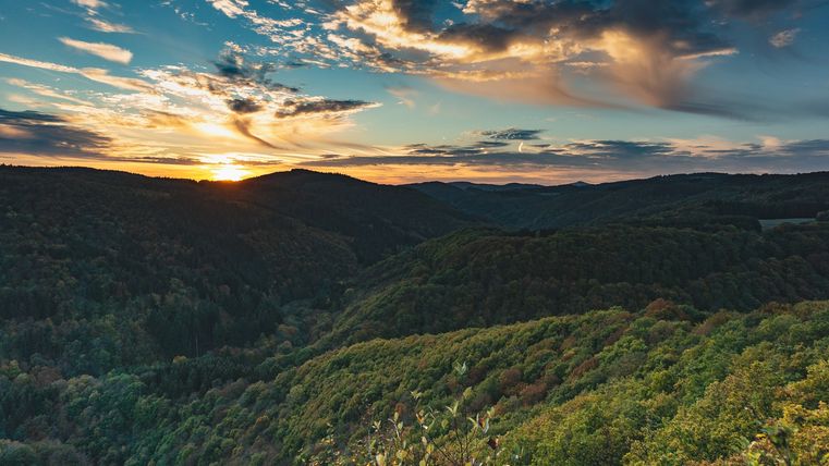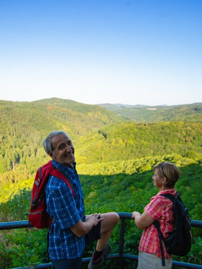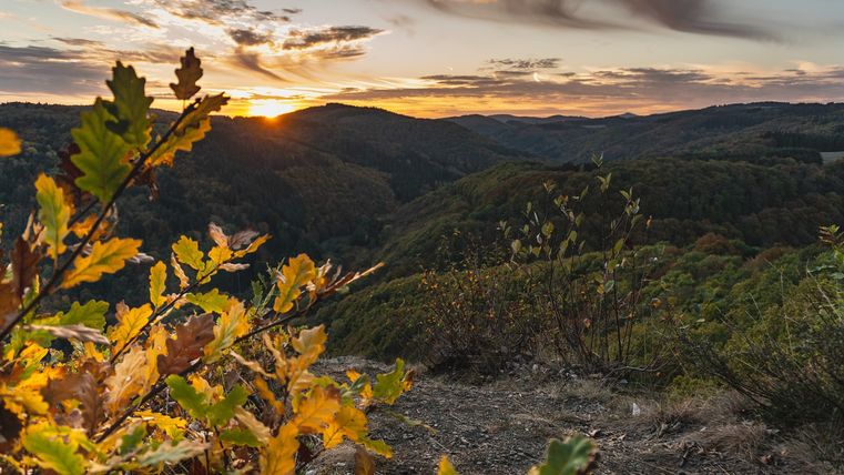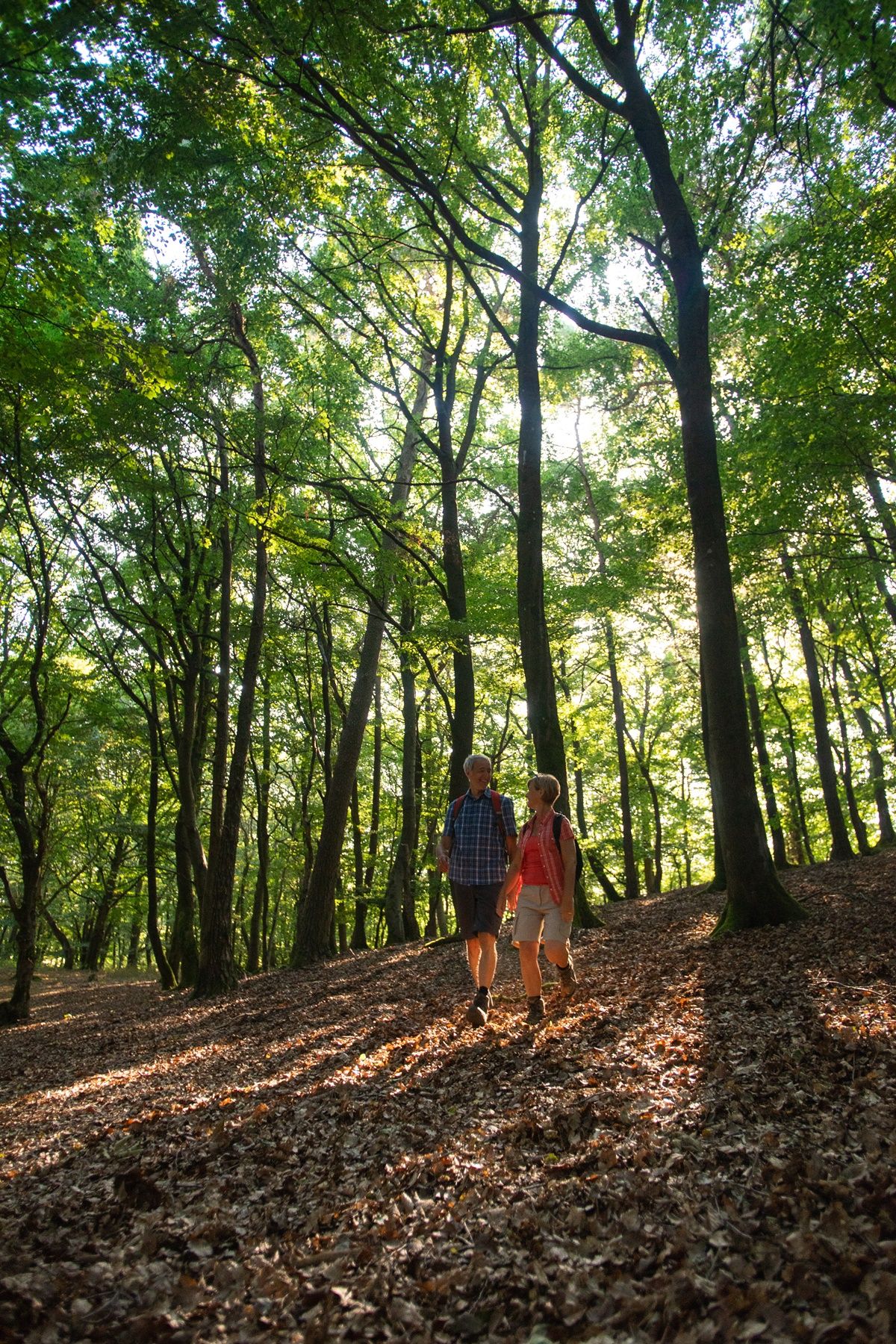 Der Panoramaweg beginnt am Dorfplatz in Kirchwald und führt an der Pfarrkirche St. Dionysius und am Friedhof vorbei zur Kirchstraße bis an den Ortsrand. Dort kann man zum ersten Mal den Blick über das Nettetal hinüber zum Gänsehals schweifen lassen. Von hier aus geht es weiter in Richtung Mohrsberg. Dieser ist geprägt durch einen dichten Wacholderbestand. Zu Füßen des Mohrsbergs liegt ein Heiligenhäuschen, welches dem heiligen Rochus und der Muttergottes geweiht ist. Dieses Kleinod bietet eine willkommene Gelegenheit zur Rast. Weiter geht es durch tiefgrüne Wälder in Richtung Nitzblick. Zu diesem gelangt man über einen Waldpfad hinter der dort gelegenen Grillhütte. Dort erwartet einen ein majestätischer Panoramablick über das Tal der Nitz, die sich über Jahrhunderte in die schroffen Felsen gegraben hat, bis zur Hohen Acht, dem höchsten Berg der Eifel. Wenn man sich von diesem Anblick verabschieden kann, geht es weiter auf den Steinbüschel mit einem weiteren fantastischen Weitblick in Richtung Kürrenberg. Von dort aus führt ein geteerter Weg wieder in die Nähe des Dorfes. Auf eurem weiteren Weg begleiten euch die Erhebungen des Hochsimmer, Hochstein und Sulzbusch. Am Ortsrand entlang geht es wieder zurück zum Dorfplatz.