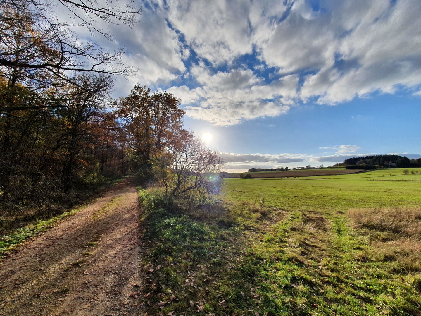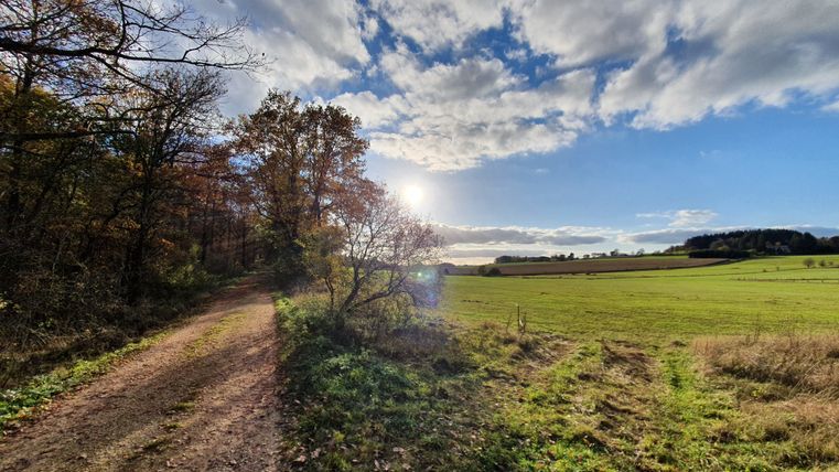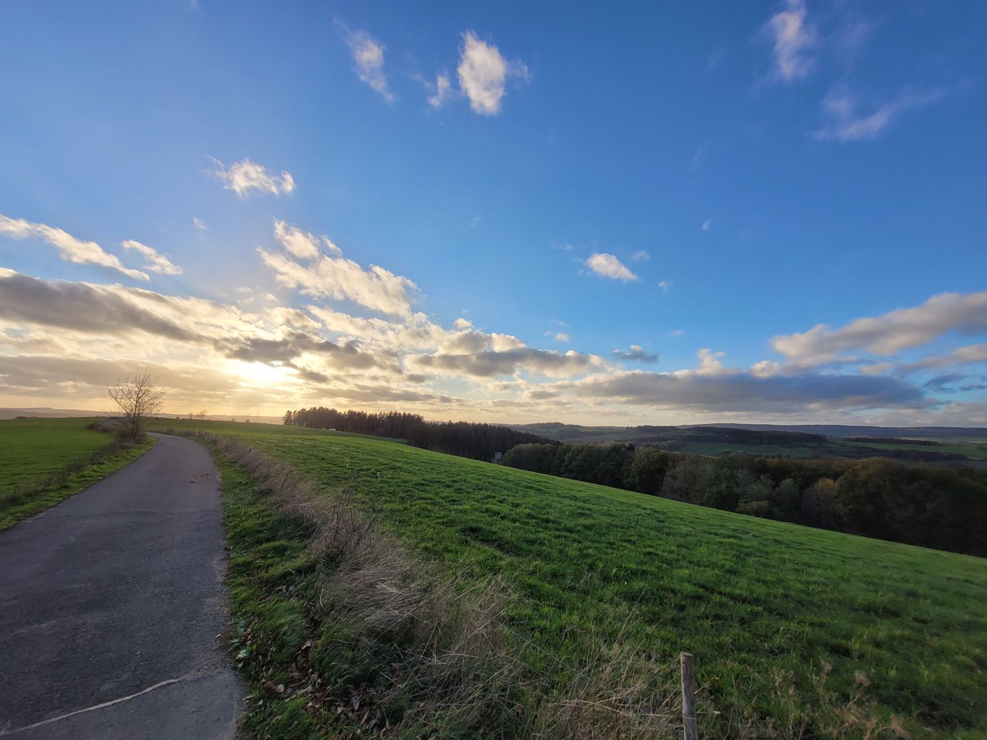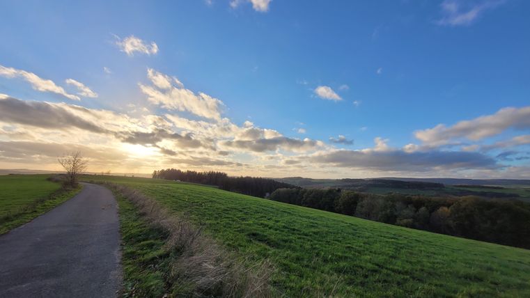 Natürlich kann der Weg in beide Richtungen erlebt und begangen werden. Unweit des Ausgangspunkts liegt Niederprüm. Von seinen Höhen bietet sich ebenfalls ein reizvoller Blick auf den Ortskern von Niederprüm mit der hübschen weißen Pfarrkirche St. Gordianus und Epimachus, die eindrucksvolle Talbrücke der A60 über die Prüm sowie auf die Höhenlagen von Prüm am Kalvarienberg und am Tettenbusch. Zeit, innezuhalten, Blick und Gedanken schweifen zu lassen und ganz tief durchzuatmen. und einfach die Schönheit der Landschaft, der Ortschaften und des Augenblicks zu genießen." (Susanne Wingels)