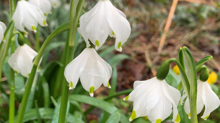 Im Frühjahr ist die Wandertour ein besonderes Erlebnis, wenn sich die ersten Frühlingsboten, die Märzenbecher, zeigen. Sie sehen aus wie große Schneeglöckchen und stehen unter besonderem Naturschutz. Das Vorkommen in der Eifel zählt zu den größten in Deutschland. Es mutet fast an, als hätte es gerade geschneit, wenn der Blick auf die großen Flächen mit den zarten weißen Blüten fällt.