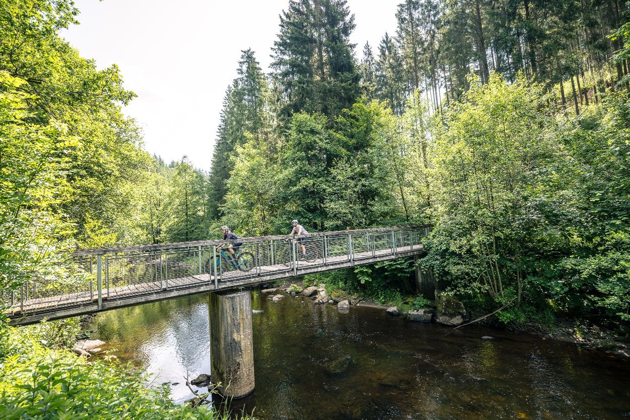 Ein Highlight: der Abschnitt auf der Vennbahn mit historischem Flair. Gönn Dir den Blick auf die Burg Monschau – am besten vom Eifelblick aus – und eine Pause an der Köhlerklause mit ihrem historischen Sägewerk am Kluckbach.