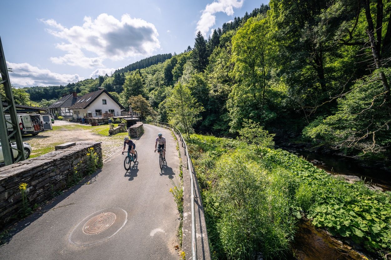 Diese anspruchsvolle Graveltour mit abwechslungsreichen Berg- und Tal-Profil verbindet knackige Anstiege, wilde Abfahrten und echte Eifelmomente – von der historischen Altstadt Monschau bis zum verwunschenen Baumlehrpfad im Rurtal.