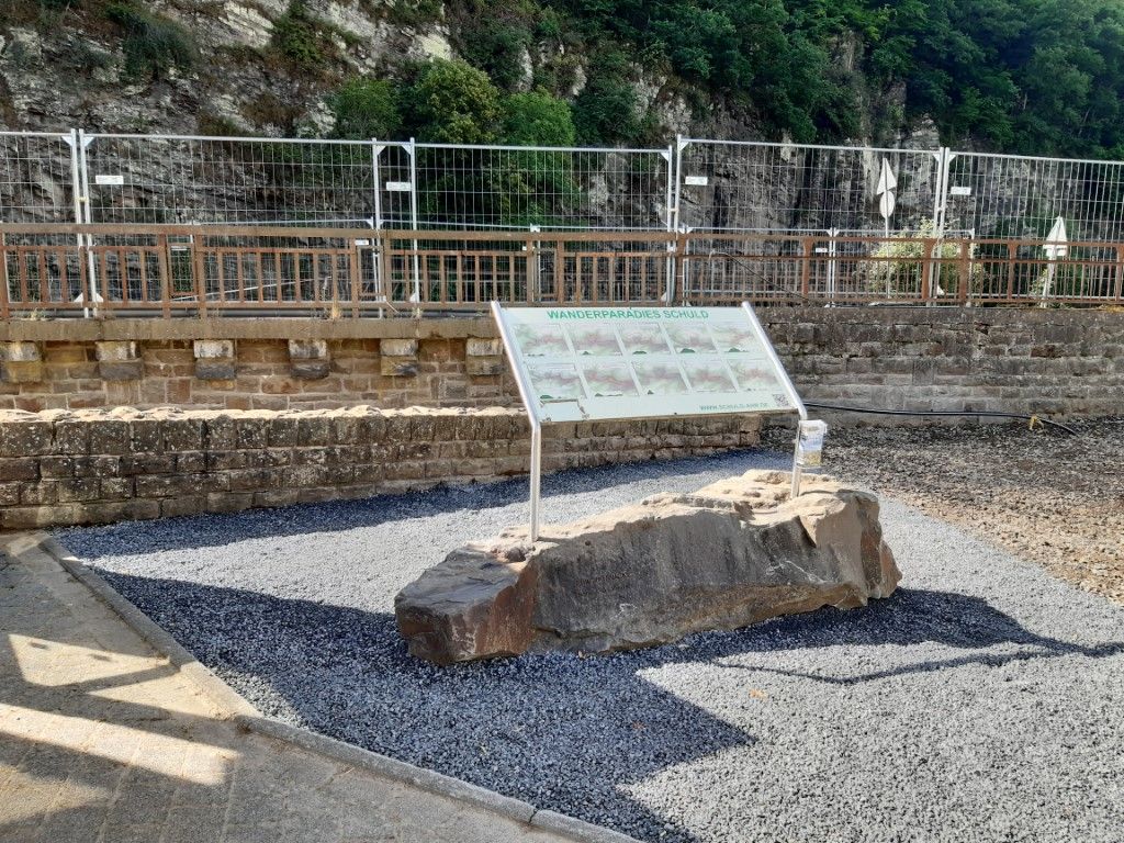 Der Rundwanderweg Nr. 7 beginnt in der Ortsmitte von Schuld vor der Brücke an der Hinweistafel "Wanderparadiese Schuld" und führt zunächst bergauf zur berühmten Pilgerstätte, der Schornkapelle. Von dort geht es weiter an der Freilichtbühne vorbei zum Nachbarort Insul. Kurz vor Insul treffen Sie auf das Prümer Tor, ein imposantes Felsgebilde mit einer interessanten Geschichte. Vorbei am Goldloch, einem Grubenfeld mit drei stillgelegten Stollen eines ehemaligen Kupferbergwerks, wandern Sie gemütlich zurück nach Schuld.