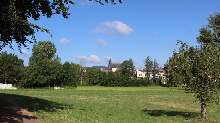 Vom Parkplatz geht es links die Hauptstraße hinunter. Anschließend biegen Sie zweimal rechts ab, erst in die Straße „In der Hohl“ und dann in den Hahnenwiesenweg. Sie laufen entlang des „Krufter Bachs“ bis Sie links eine Fußgängerbrücke erblicken, die Sie nehmen. Auf der anderen Seite angekommen folgen Sie der Straße bis rechts ein kleiner Pfad einmündet. Folgen Sie dem Pfad entlang des „Krufter Bachs“, wobei Sie eine Straße überqueren. Am Ende des Parks mit kleinem Fußballplatz halten Sie sich links und biegen Sie dann rechts auf den Plaidter Weg ab. Folgen Sie diesem bis er in die Kondstraße übergeht, wobei Sie abzweigenden Straßen keine Beachtung schenken. Weiter die Kondstraße geradeaus gelangen Sie an die Kreuzung, wo linkerhand die Wingertskapelle steht. Dort folgen Sie der Straße „Wingertsberg“ links hoch auf den „Korret“. Oben angekommen, erblicken Sie etwas oberhalb die Johanneskapelle. Folgen Sie dem Weg weiter geradeaus und halten Sie sich bei der nächsten Möglichkeit rechts. Bei einem herrlichen Ausblick führt der Weg weiter um den Korret herum bis Sie zur Abzweigung Richtung Kretz kommen, der Sie rechs runter in den Ort folgen. Vorbei an der Firma Zöller, passieren Sie anschließend eine Brücke bevor Sie wieder auf die Straße „In der Hohl“ stoßen. Folgen Sie dieser ein Stück und biegen Sie dann links in die Hauptstraße ab, der Sie geradeaus zurück zur Kirche folgen.