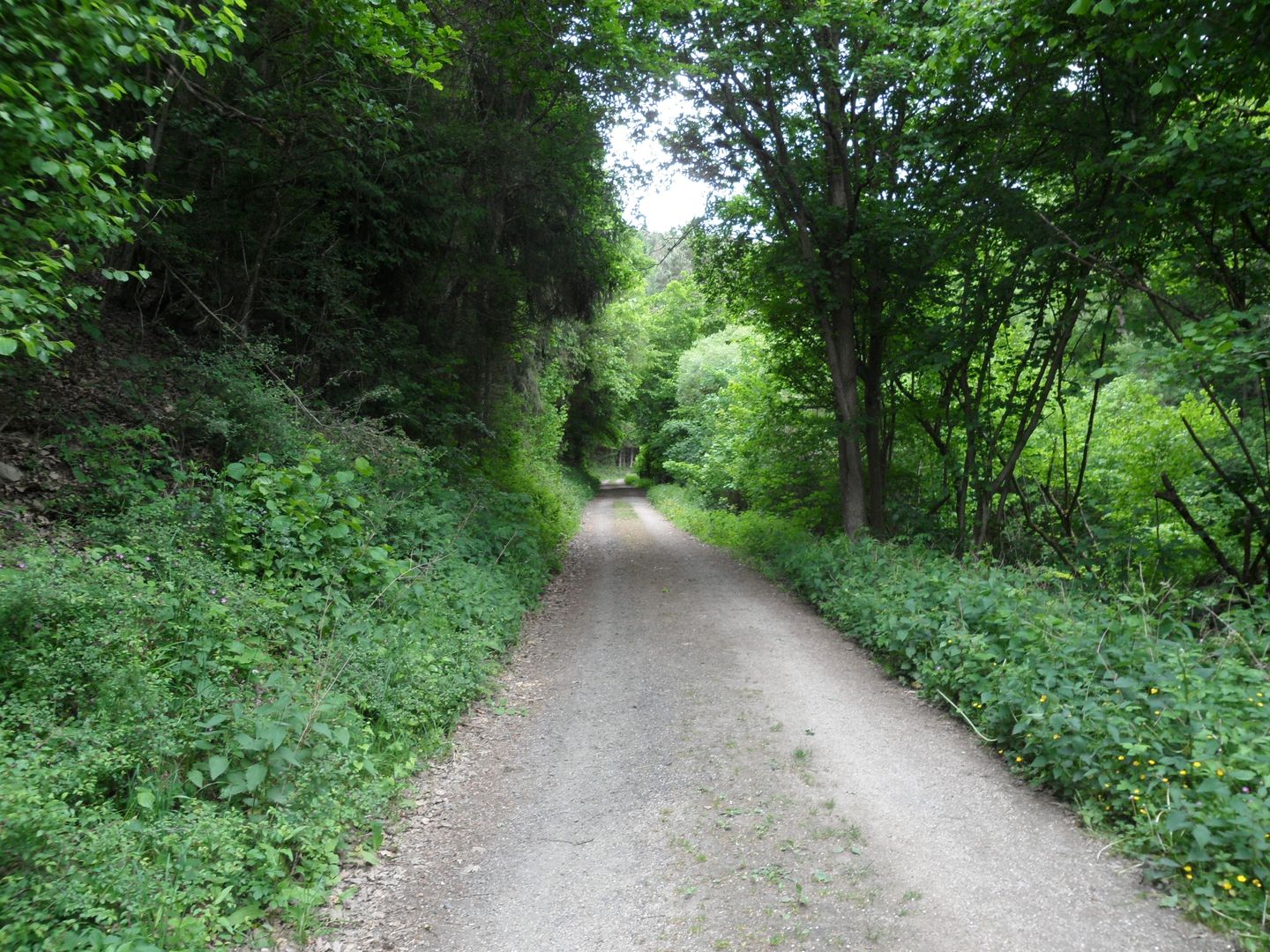 An der nächsten Wegekreuzung nehmen wir den linken Weg durch Laub- und Tannenwald bergauf.