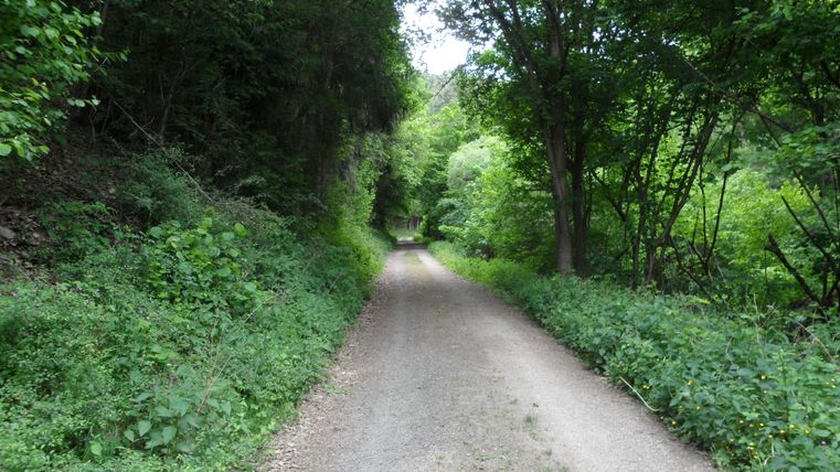 Dieser folgen wir nach rechts bis zur Kreuzung. Dort gehen wir links weiter -an der Kapelle vorbei ins Dorf - und halten uns bei der nächsten Straßengabelung rechts. An der nächsten Wegkreuzung gehen wir geradeaus und wandern über den Bergkamm Richtung Schuld zurück. Der Weg geht später in einen geteerten Wirtschaftsweg über, dem wir weiter ins Tal folgen.