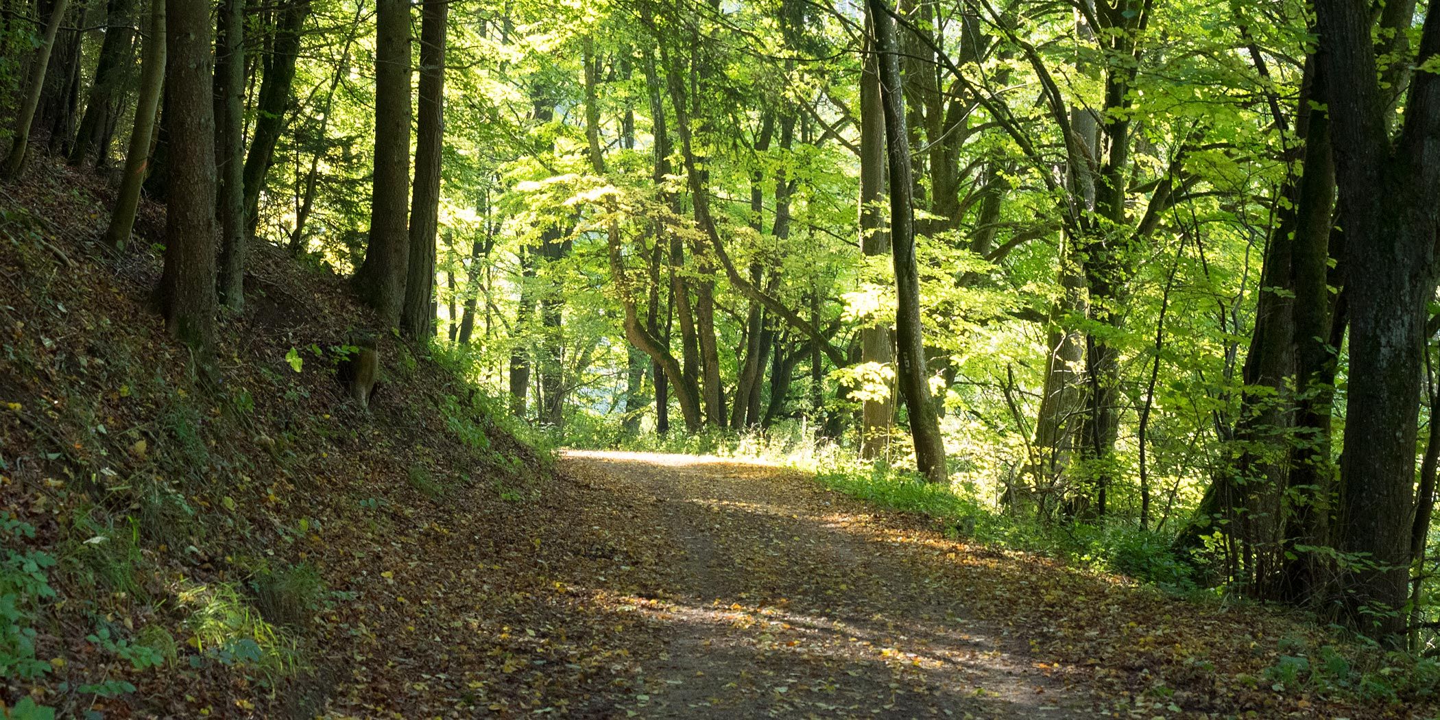 Der Rundweg führt komplett über Waldwege durch den Nusbaumer Hardt.