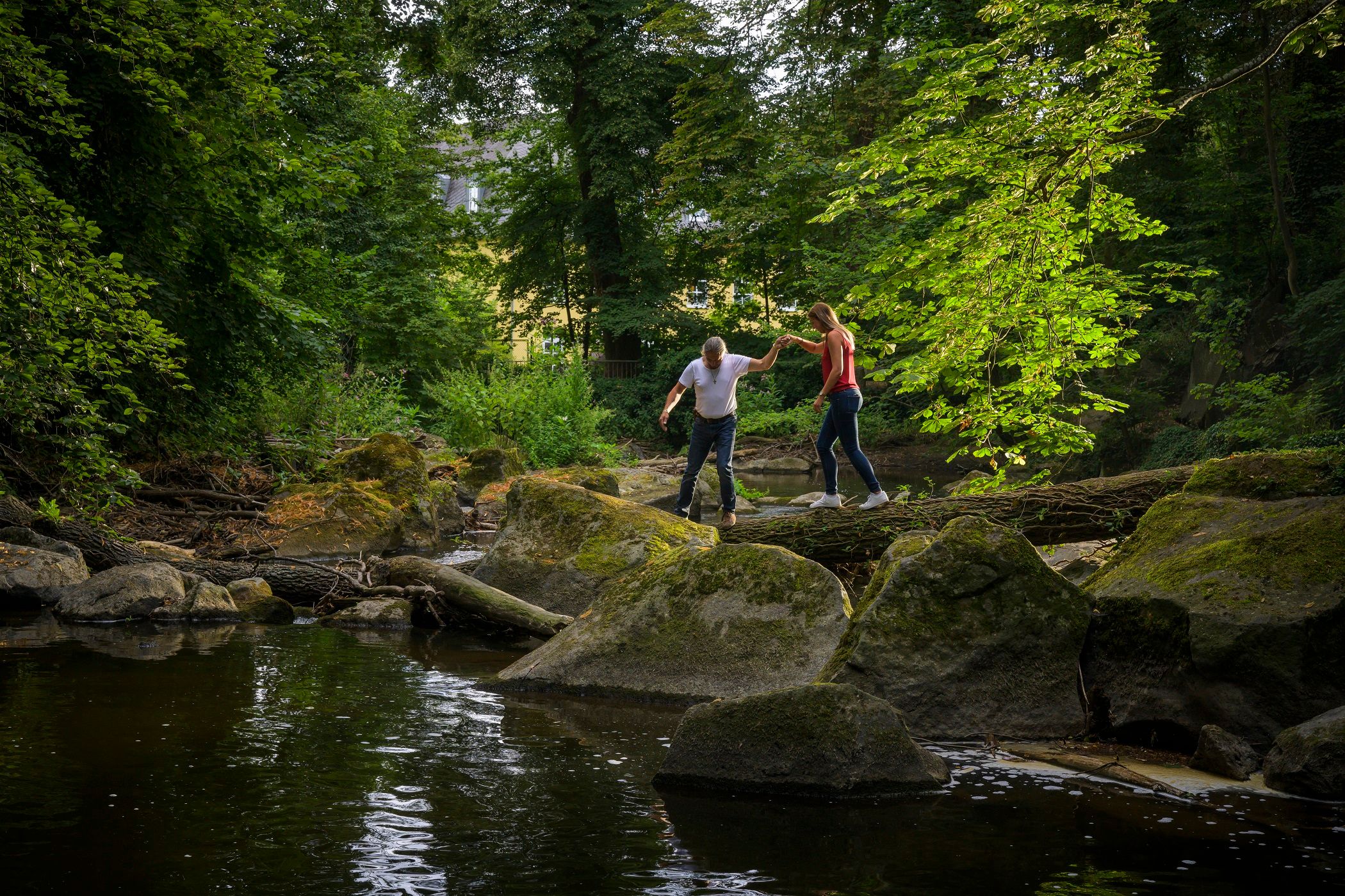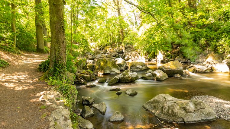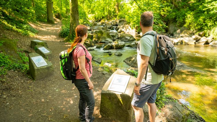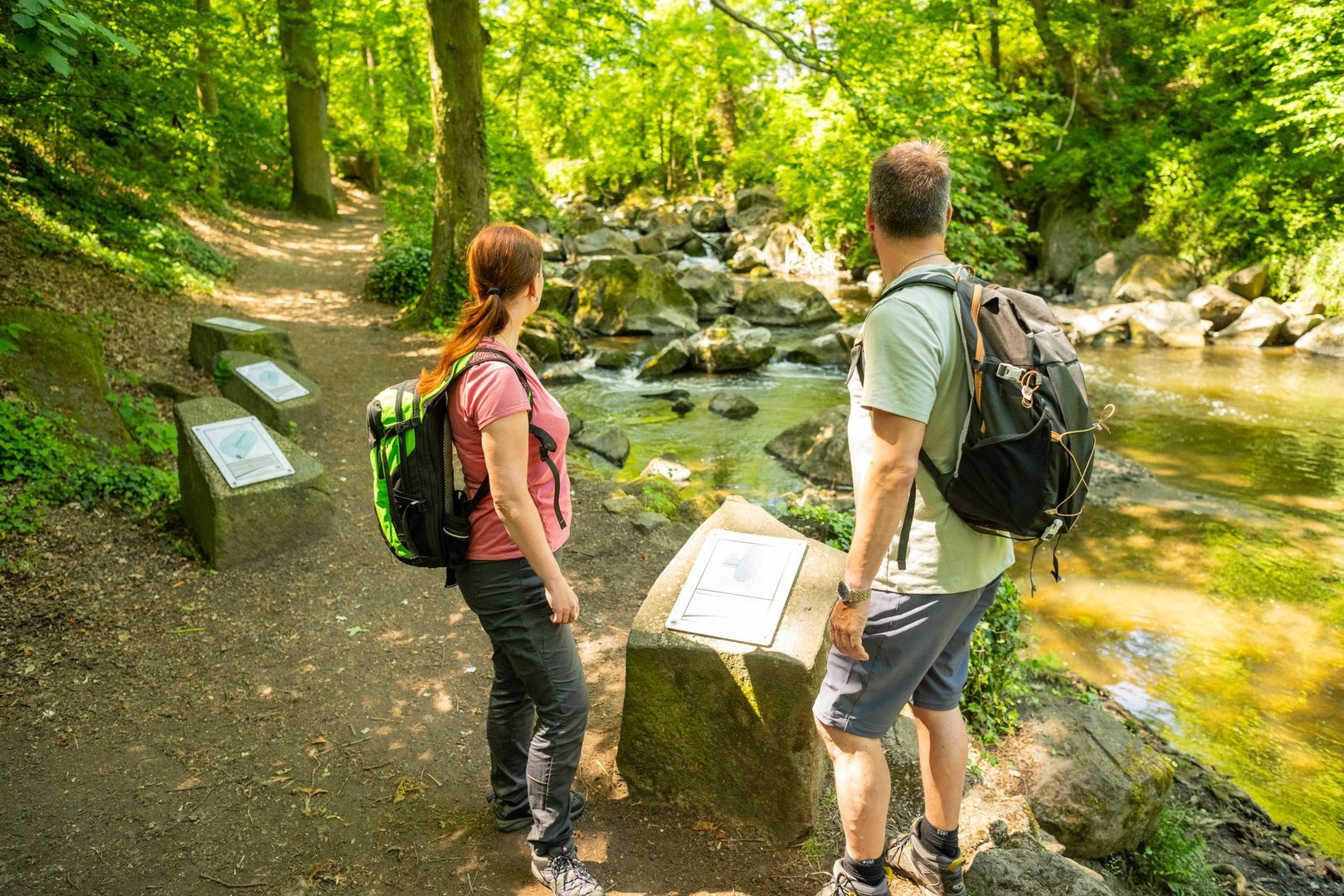 Sie stehen vor der Rauschermühle mit Blick zum Eingang des Vulkanparks-Infozentrums. Gehen Sie nun rechts hoch, überqueren Sie die Brücke und biegen Sie anschließend (hinter dem weißen Haus) links in den Weg ein. Dieser Pfad führt Sie entlang der „Nette“ zur Willibrordstraße. Folgen Sie der Straße linksherum bis Sie linkerhand wieder einen kleinen Weg erblicken, in den Sie einbiegen. Am Ende des Weges halten Sie sich recht. Kurz darauf gelangen Sie zu einer Abzweigung, wo Sie sich für den zweiten Weg nach links entscheiden. Dieser führt Sie an einem schönen Teich vorbei, bevor es weiter durch den Park geht. Am Ende des Weges halten Sie sich zweimal links und überqueren eine Brücke. Hier macht der Weg eine Schleife nach rechts und schlängelt sich am Ufer der „Nette“ entlang. Bei der nächsten Brücke folgen Sie dem Weg weiter geradeaus bis zu einer weiteren Brücke, die Sie überqueren. Hinter der Brücke folgen Sie dem Weg entlang einer Wiese bis zur Skateranlage, wo Sie rechts abbiegen und später erneut einen Bach überqueren. Nach einem kurzen Stück am Bach entlang führt der Weg wieder über eine Brücke bis zum „Café am Park“. Hier biegen Sie rechts und dann direkt wieder links ab, so dass Sie zur Brücke gelangen, die Sie auf dem Hinweg überquert haben. Biegen Sie vor der Brücke links ab und folgen Sie dem Weg rechts am Weiher entlang bis zur Kreuzung. Dort nehmen Sie den zweiten Weg rechts, biegen dann links in einen Pfad ein und gelangen wieder zur Willibrordstraße. Halten Sie sich rechts und biegen Sie den nächsten Pfad rechts ein, der Sie zurück zum Parkplatz führt.