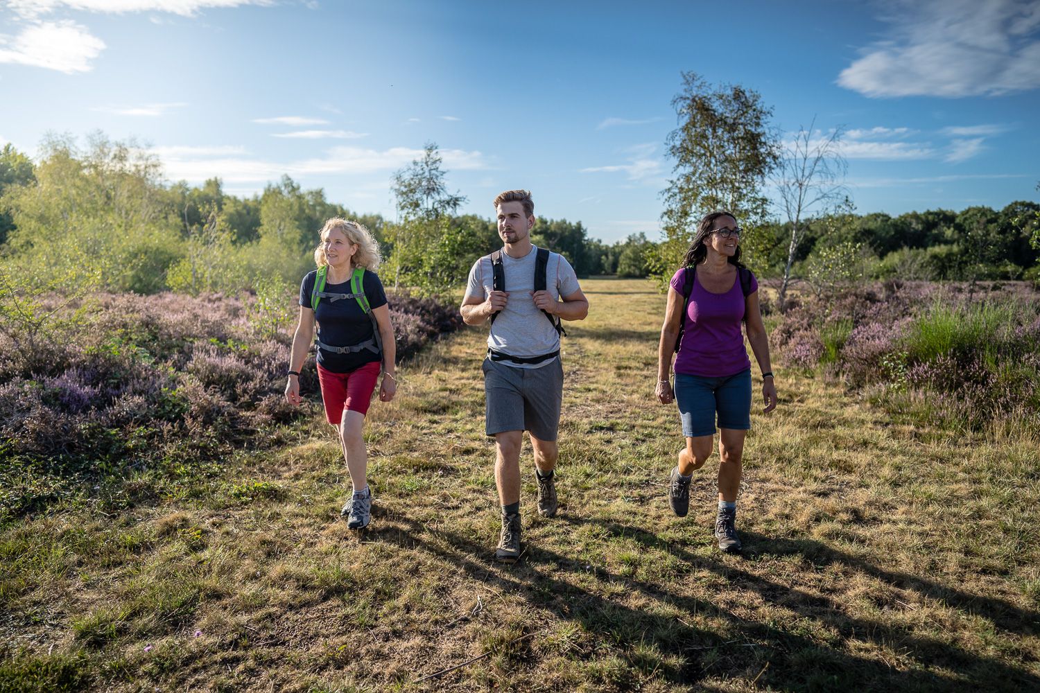 Die ebenen Wanderwege durch die offene Drover Heide, über Wiesen und lichte Wälder, führen teilweise über Holzstege und bieten besondere Einblicke in den Lebensraum seltener Flora und Fauna.