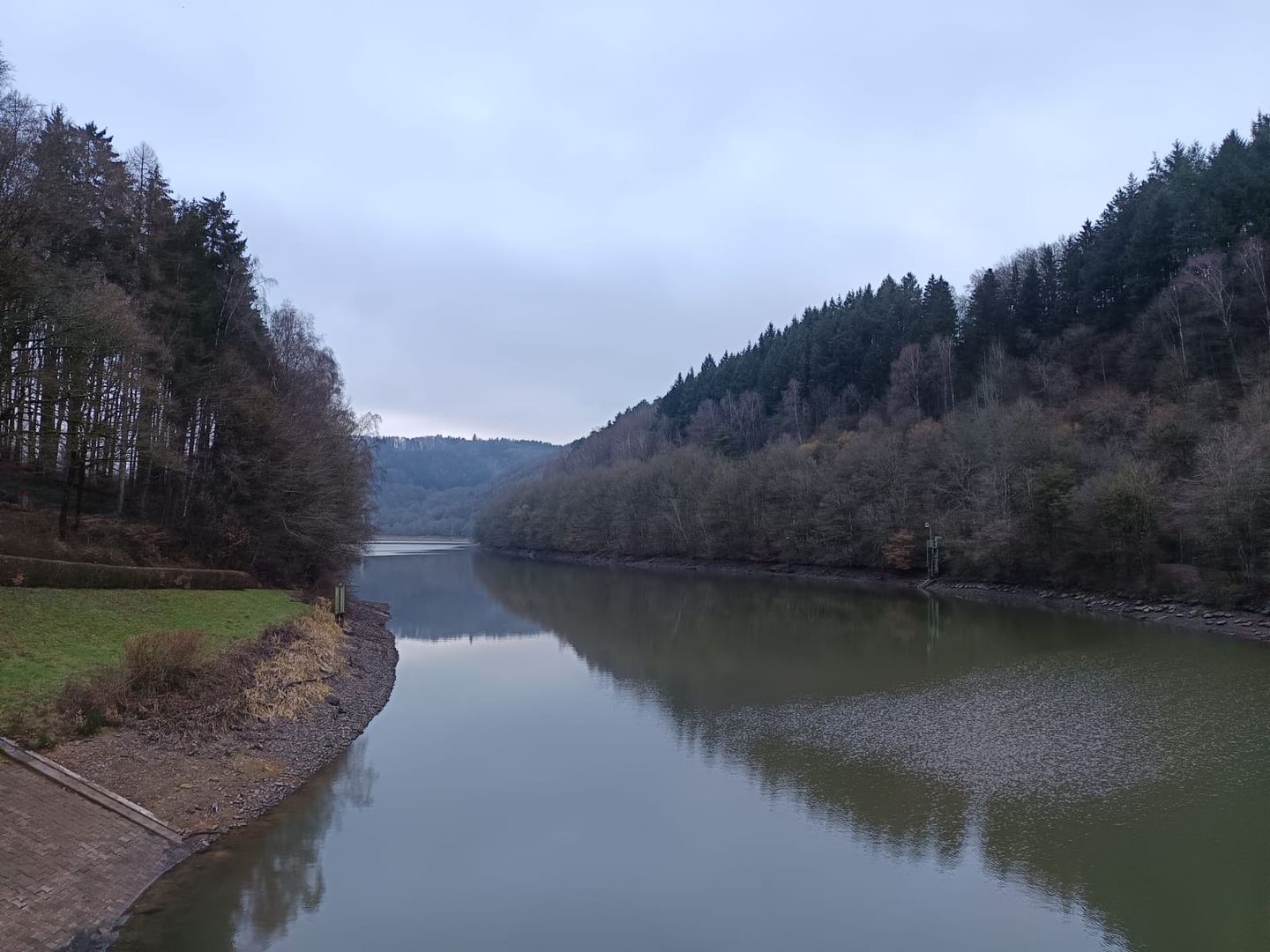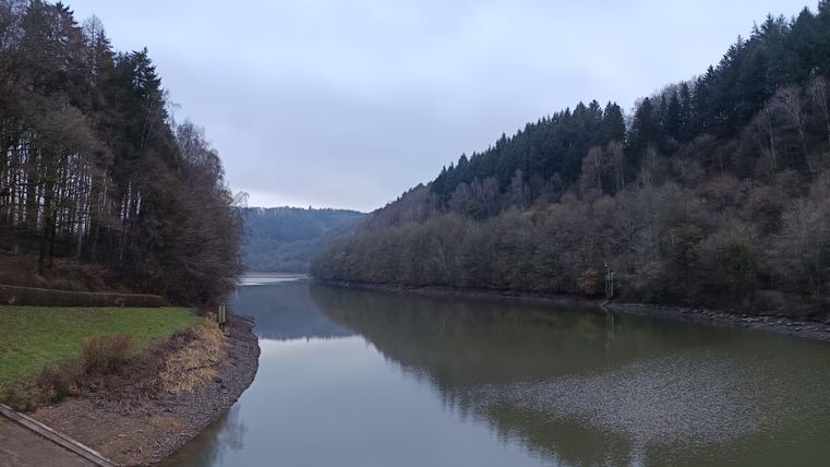 Der Seeufer-Rundweg startet am Parkplatz "Zur Rotlay" und verläuft zunächst auf der Seeufer-Promenade. An der Einmündung der Prüm in den Stausee überquert der Weg die Brücke und führt auf der südlichen Seeseite wieder zurück. Hier hat man einen schönen Ausblick auf den See.