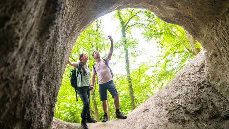 Eine detaillierte Beschreibung mit Hintergrundinformationen finden Sie auch auf der Website unseres Vulkanparkführers Konrad Friedgen: https://profirouten.de/eifel/geopfad-route-u-trasshoehlenweg