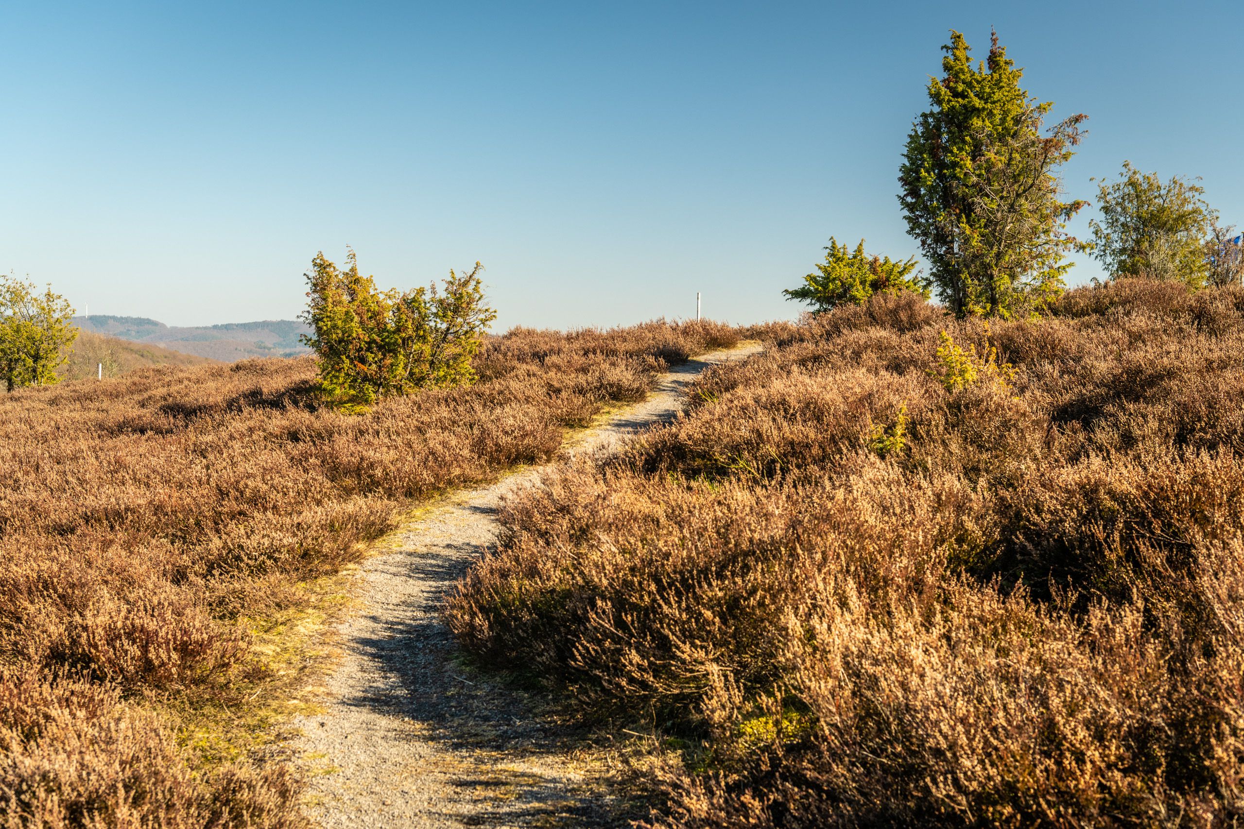 Hochflächen mit weiten Panoramablicken in die Eifel, Waldpassagen mit einem kühlenden Blätterdach über den Köpfen der Wanderer, Bachgeplätscher und natürlich die typische Wacholderheide in den Naturschutzgebieten Wabelsberg und Büschberg: Der Traumpfad Wacholderweg kann mit vielen Höhepunkten aufwarten. Besonders ab etwa Mitte August, wenn die Heide beginnt zu blühen, bietet sich ein atemberaubender Blick über die Heideflächen. Doch auch zu anderen Jahreszeiten lohnt es sich, den Rundweg zu wandern.