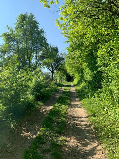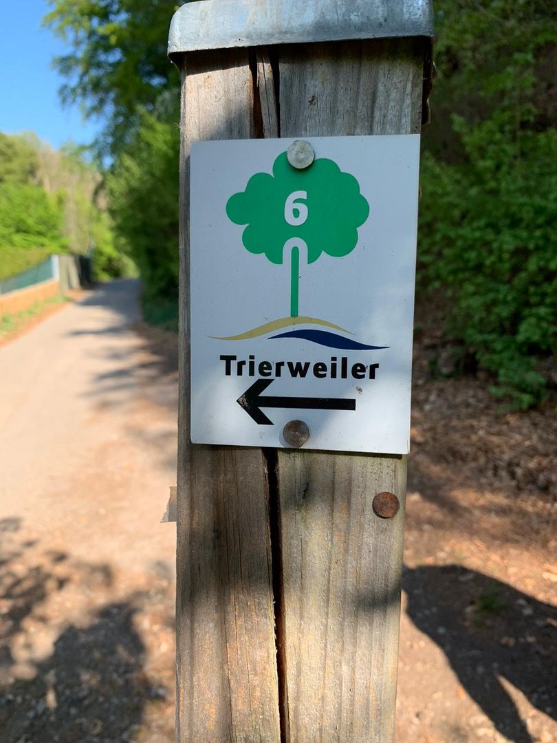 Von hier geht es dann durch den Wald zurück nach Sirzenich. Der stetige Aufstieg verteilt sich jedoch über die Wegstrecke. Entlang des Waldes öffnen sich die Bäume und geben einen tollen Blick auf die Mariensäule (eines der Wahrzeichen Triers) frei.