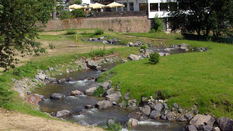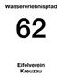 Der Ausgangspunkt des insgesamt 22 km langen Wassererlebnispfades ist der Parkplatz Friedenau im Zentralort Kreuzau. Nach Überquerung eines kleinen Teicharmes erreichen Sie das Schneidhausener Wehr, eines der wichtigsten und ältesten Wehre im Gemeindegebiet Kreuzau, und wandern ruraufwärts vorbei an mehreren denkmalgeschützten Mühlenteichen und Wehranlagen wie z.B. dem Oberschellenwehr „An den 3 Erken“. Schon seit vielen Jahrhunderten durchziehen Mühlenteiche als von Menschenhand geformte Wasserkanäle das Rurtal. Die Teiche sind überwiegend im Spätmittelalter entstanden und dienten seinerzeit dem Betreiben von Mühlen bzw. von privaten Kraftwerken. Auch heute sind sie noch von großer Bedeutung für die in der Papierindustrie ansässigen Firmen in Kreuzau und Untermaubach. An jedem Mühlenteichabzweig befindet sich ein Schütz. Hiermit wird der Wasserstand des Mühlenteiches reguliert. Im Ortsteil Obermaubach erwandern Sie den Stausee mit Wehranlage, neuer Fischtreppe, Wassergewinnung der Stadtwerke Düren und Kraftwerk. Bei der Stauseeumrundung bieten sich Ihnen eindrucksvolle Blicke auf Ruhe- und Brutplätze zahlreicher Wasservogelarten. Der Rückweg führt Sie durch Bachtäler und künstlich angelegte Teiche an einem Wasserhochbehälter vorbei zu einem für den Wandertourismus ausgesuchten Aussichtspunkt, dem Eifelblick „Hemgenberg“ mit Fernblick über die Ruraue bis zum Siebengebirge. Über den Höhenrücken oberhalb von Winden wandernd, hat man den ständigen Blickkontakt ins Rurtal und gelangt talwärts zum Ausgangspunkt zurück.