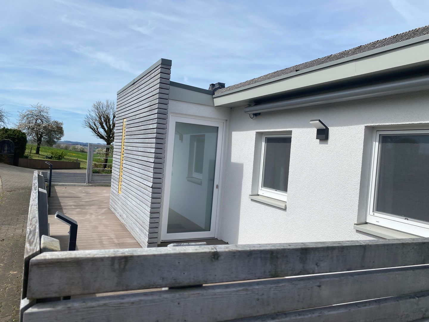 Auf unserer Terrasse finden Sie wunderschöne Lounge-Möbel, die zum Entspannen und Verweilen einladen. Genießen Sie die frische Luft und den herrlichen Ausblick auf die umliegende Natur. Zudem bieten wir Ihnen zwei elektrische Markisen, die Ihnen Schutz vor Sonne bieten.