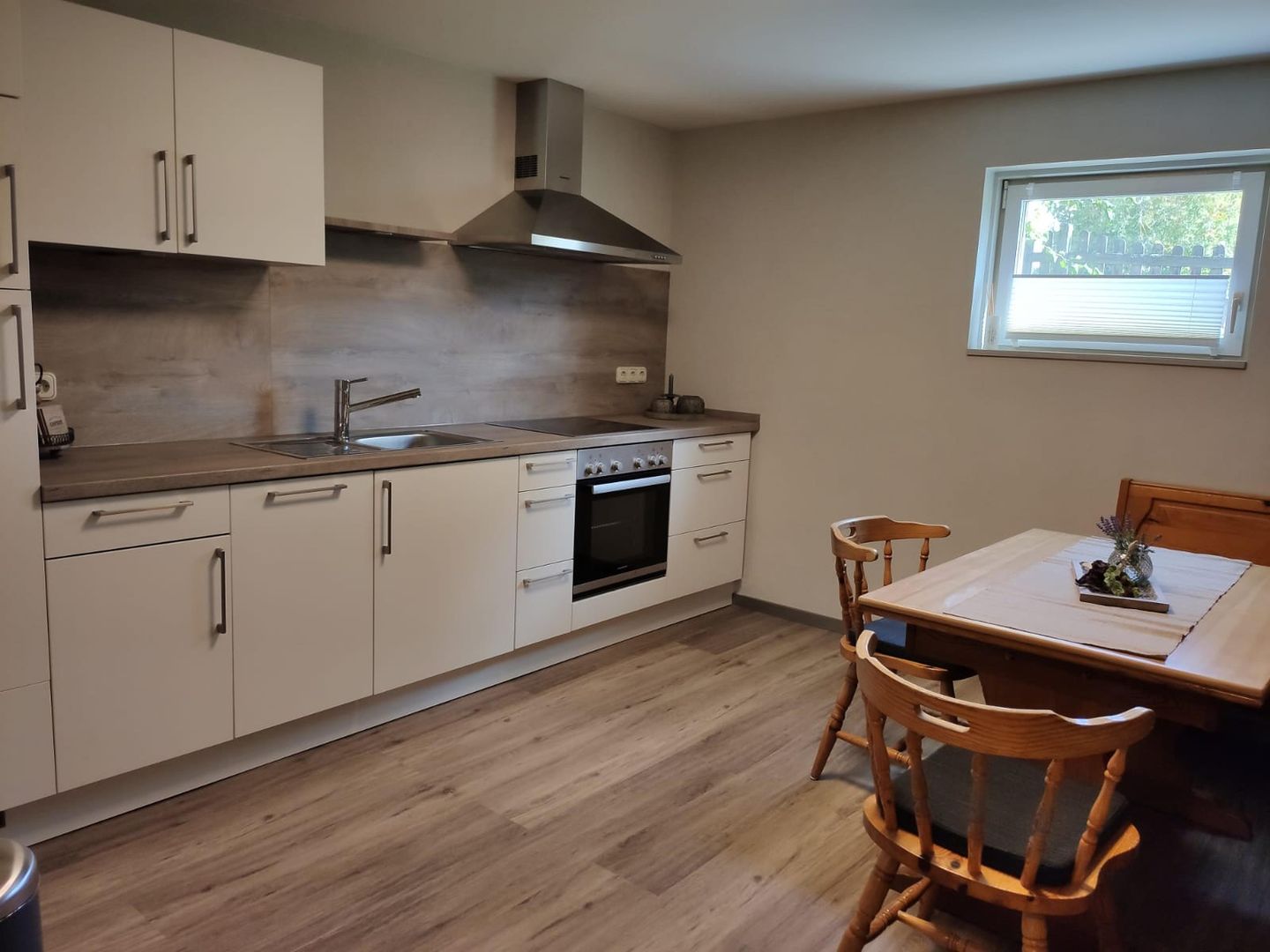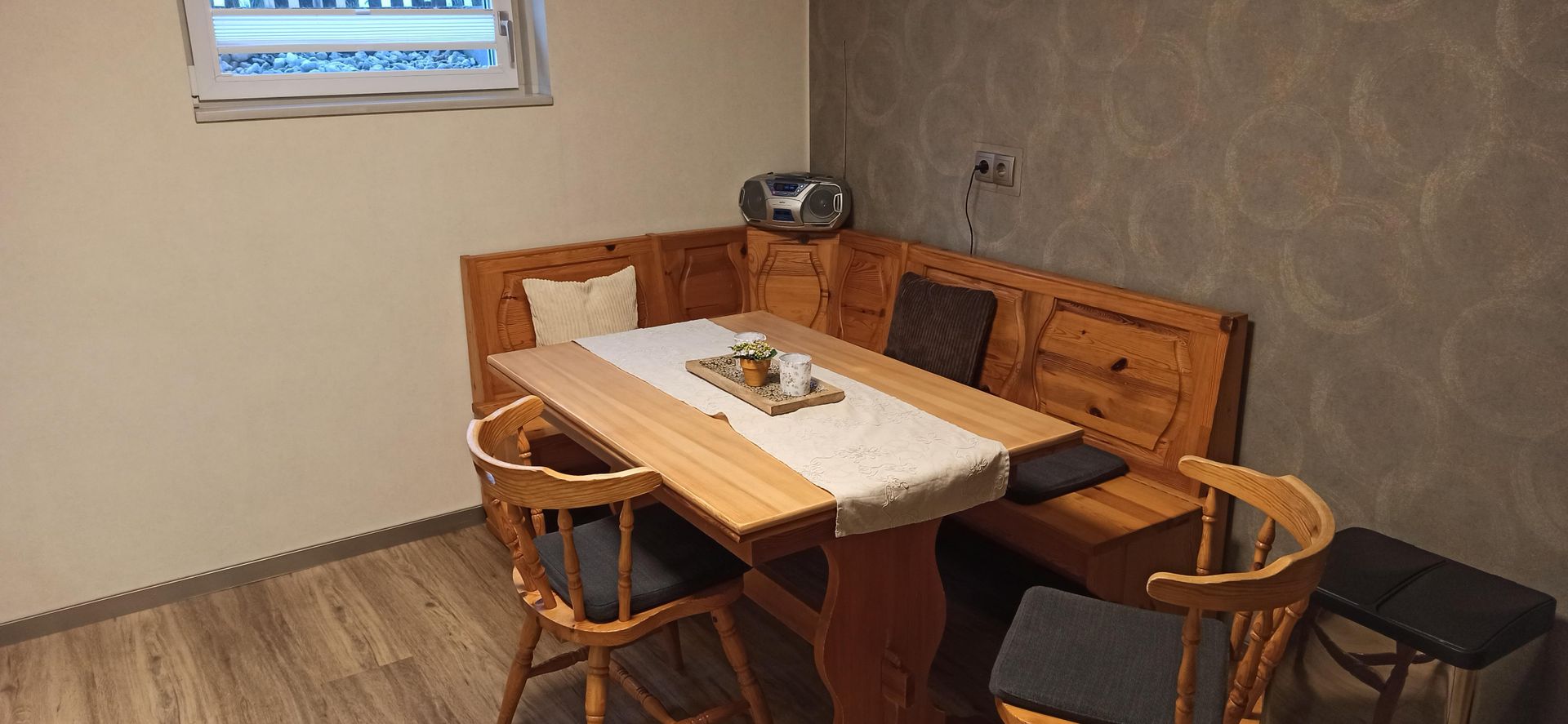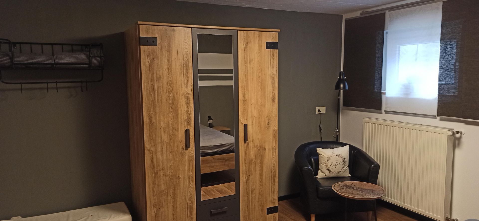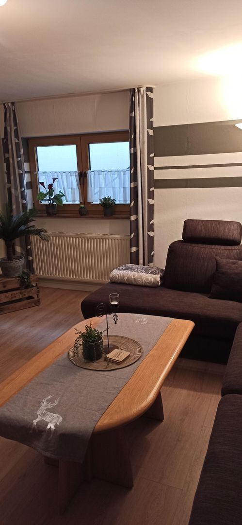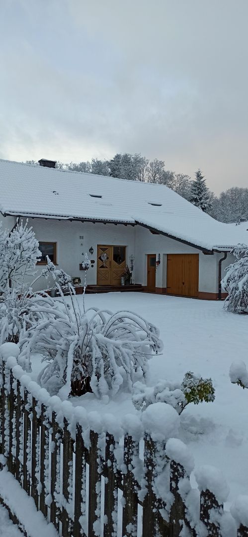 Das Ferienhaus "Freiraum" ist mit viel Herzblut und Liebe zum Detail im Herbst 2017 fertig umgebaut worden und wartet nun darauf, Gästen ein einmaliges Wohnerlebnis zu bieten.Die ca. 160 qm Wohnfläche sind in eine Wohnküche, Duschbad, Wohnzimmer und zwei Schlafzimmer auf zwei Ebenen aufgeteilt. Ein kleiner Garten steht zur Verfügung.Das Haus besticht durch ungewöhnlich viel Freiraum und ungewöhnliche Machart.Manches ist Einzigartig und das wird man nirgends so finden. Das Ferienhaus in Reifferscheid befindet sich mitten in der Hocheifel, das Ahrtal mit seinen zahlreichen Weinbergen ist ebenfalls nicht weit und selbst wenn man kein Motorradfahrer oder Autorennenliebhaber ist, hier gibt es einfach viel zu sehen. Wichtige Infomationen: Durch die offene Bauweise der Treppe ist dieses Haus nicht für Kinder im Krabbelalter geeignet. Ebenfalls ist das Haus nicht mit Kinderschutzsteckdosen ausgerüstet, so dass das Haus entweder für Familien mit Babys oder mit älteren Kindern geeignet ist. Alle Zimmer lassen sich mit Rolladen (an den Veluxfenstern Entsprechendes) verdunkeln. Hinzu kommt ein kleiner Garten, in dem man sich im Sommer die Sonne ins Gesicht scheinen lassen kann:-) Wichtig: Der Gartenteich ist nicht Kleinkindersicher. Einige Details: Die Küche ist mit ca 30 qm ein Raum der Zusammenkunft, wo gekocht, gegessen, gelacht, getrunken und gespielt werden kann. Neben den üblichen Koch- und Essgeschirrutensilien, einem Ceranfeld mit vier Kochplatten und einem großen Küchlschrank mit Gefrierfach findet ihr hier ebenfalls einen Geschirrspüler, Mikrowelle, Wasserkocher und Senseokaffeemaschine. Eine kleine Auswahl an Tee, Kaffee sowie Gewürze stehen bereit. Ebenfalls vorhanden sind Spülutensilien. Die Küche hat zwei Eingänge, und durch die Doppelglastür und das sehr große Fenster ist die Küche sehr lichtdurchflutet. Im Flur gibt es eine Garderobe mit Sitzschränkchen, sowie einen Putzschrank mit Staubsauger und diversen Utensilien, falls mal was sauber zu machen ist. Das Duschbad ist nicht unbedingt das Größte, ist jedoch durch einen Eifeler Künstler zu einem Unikat verwandelt worden. Wer in der Komfortdusche (1,40 m x 1,40m) mit Regenduschkopf steht wird vielleicht erkennen, dass nicht nur die Nürburg als Fliesenmosaik an der Wand, sondern auch die Nordschleife am Boden der Dusche zu sehen ist. Essentielles wie Seife, Shampoo etc. runden das Bad ab. Das Wohnzimmer besticht durch eine Größe von über 40 qm. Neben der großen Couchgarnitur mit jeweils 2,30 und 2,15m Länge gibt es hier noch einen Kickertisch, einen Flachbildfernsehr mit USB, einen DVD Player und eine Stereoanlage mit Bluetooth. Durch den Echtholzboden hat man es hier warm und gemütlich. Ein paar Gesellschaftsspiele sowie ein Ordner mit nützlichen Informationen liegen hier ebenfalls bereit. Auf den zwei Einzel - Sofas könnten im Übrigen eine 6. und 7. Person schlafen. Die Liegefläche kommt der eines Einzelbettes gleich. Der 8. Schlafplatz ist ausschließlich ein Babybett. Vom Wohnzimmer geht eine Treppe hoch in das 1. Schlafzimmer, welches durch die Treppe offen gehalten ist. Dieser Raum ist ebenfalls über 40 qm groß und ist mit einem 1,80 x 2,00 m Doppelbett sowie einem Einzelbett von 90 x 200 cm bestückt. Alle Betten sind mit vollwertigen Matratzen und Lattenrosten ausgestattet, so dass man hier erholsam schlafen kann. Es gibt genug Schränke und Kommoden, um alle Kleidung gut verstauen zu können. Eine kleine Leseecke mit Büchern wurde zum Entspannen integriert. Hier findet man ebenfalls einen CD Spieler mit USB sowie ein Klangschalenverstärker für Smartphones, für alle die ihre Musik direkt vom Handy abspielen möchten. Durch die Dachbalken und das viele Holz an Böden und Wänden ist es hier gemütlich, dennoch nicht rustikal. Die Betten sind bei Ankunft frisch bezogen. Vom 1.Schlafzimmer geht ihr durch eine Tür in das 2. Schlafzimmer. Dieses Zimmer hat eine Größe von ca 35 qm. Hier erwartet euch ebenfalls ein 1,80m x 2,00 großes Doppelbett, welches auch vollwertige Matratzen und Lattenroste vorzuweisen hat. Hier kann man abends vom Bett aus TV bzw DVD gucken, denn auch hier befindet sich ein DVD Player. Wer lieber sitzen möchte, der kann sich in der netten Sitzecke entspannen. Möglichkeiten seine Sache zu verstauen gibt es hier auch genug. Holz und Dachbalken bringen wieder eine gemütliche Wärme in das Zimmer. Wer es etwas versteckter mag, der kann das Bett (0,9m x 2,00) oben auf der Empore nutzen. Ein kuscheliger Schlafplatz in luftiger Höhe. Zusätzlich zu den beiden Doppelbetten und den zwei Einzelbetten besteht die Möglichkeit ein Beistellbett aufzustellen, auf der die 7. Person schlafen kann. Auch im Obergeschoss lassen sich alle Räume vollständig verdunkeln.
