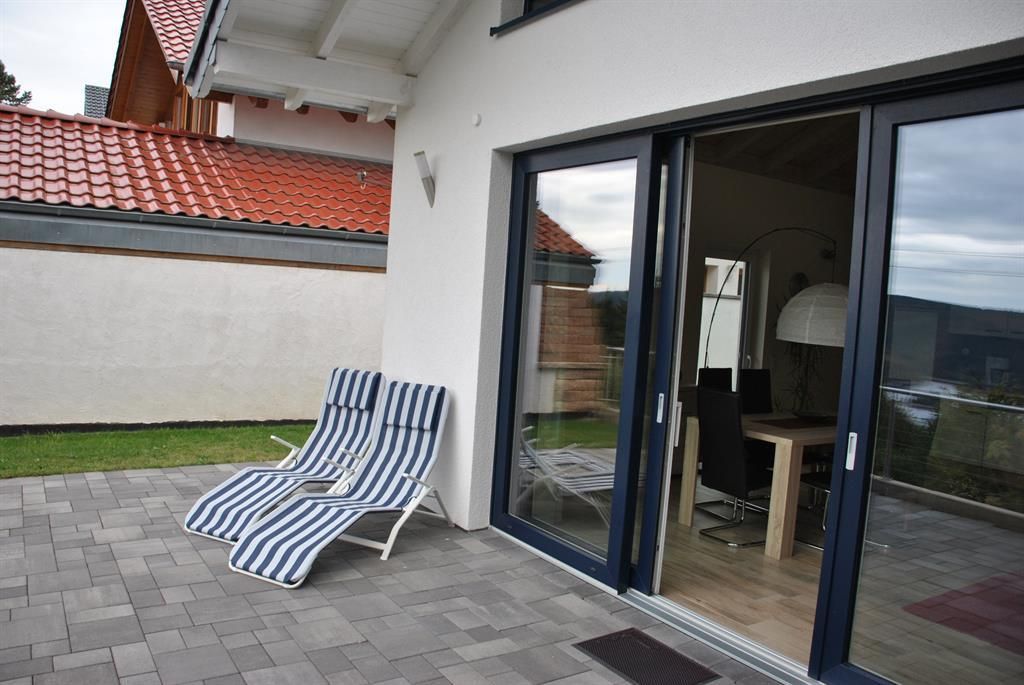 Barrierefreies, 2012 neu errichtetes, frei stehendes Einfamilienhaus mit Blick auf Rursee und Nationalpark Eifel. Komplett neu und hochwertig eingerichtet. Wohn-Essbereich mit großzügiger Küchenzeile, 2 Schlafzimmer (mit Doppelbetten), Bad, Gäste-WC sowie Doppelgarage mit direktem Zugang zum Haus.