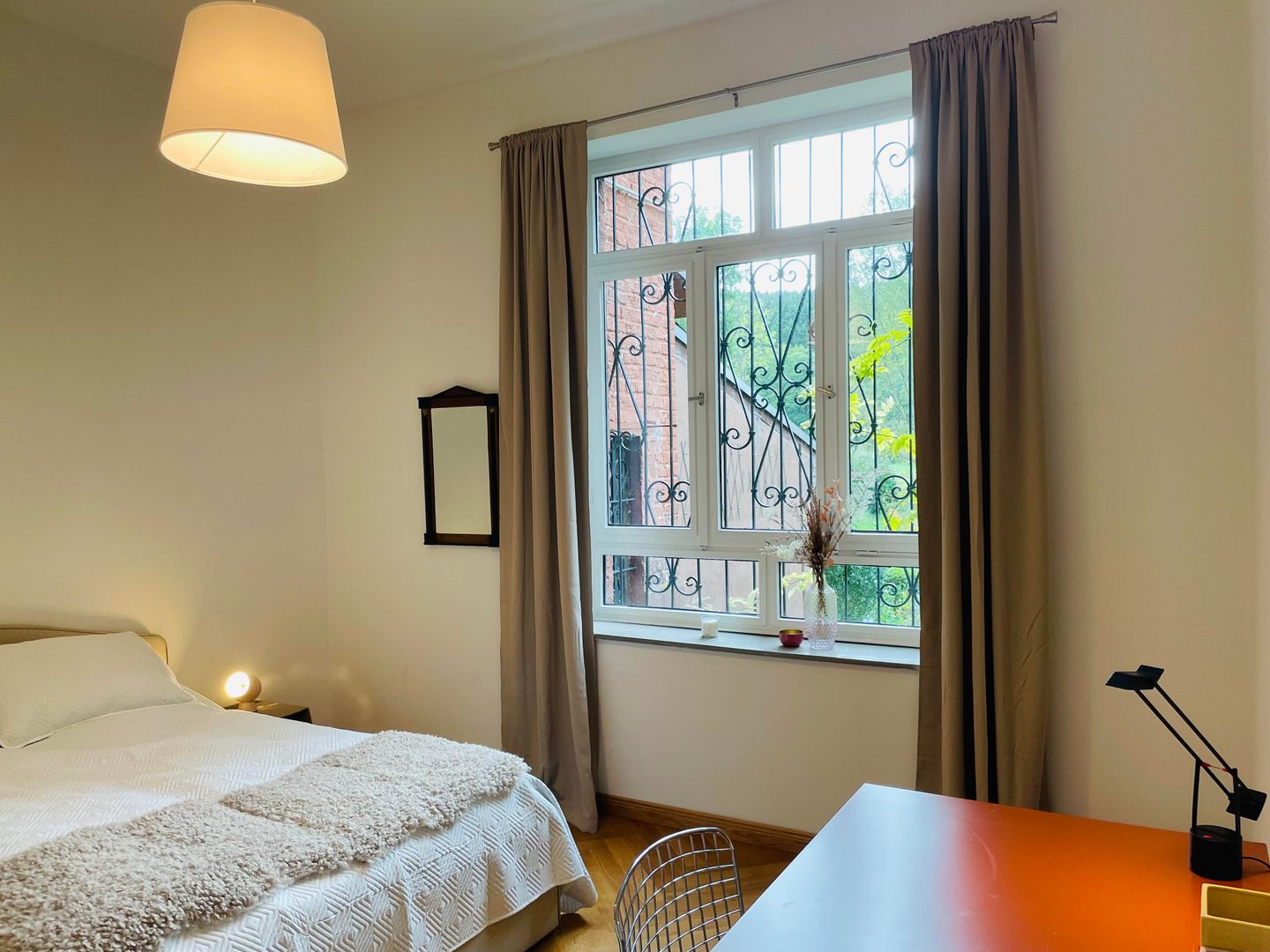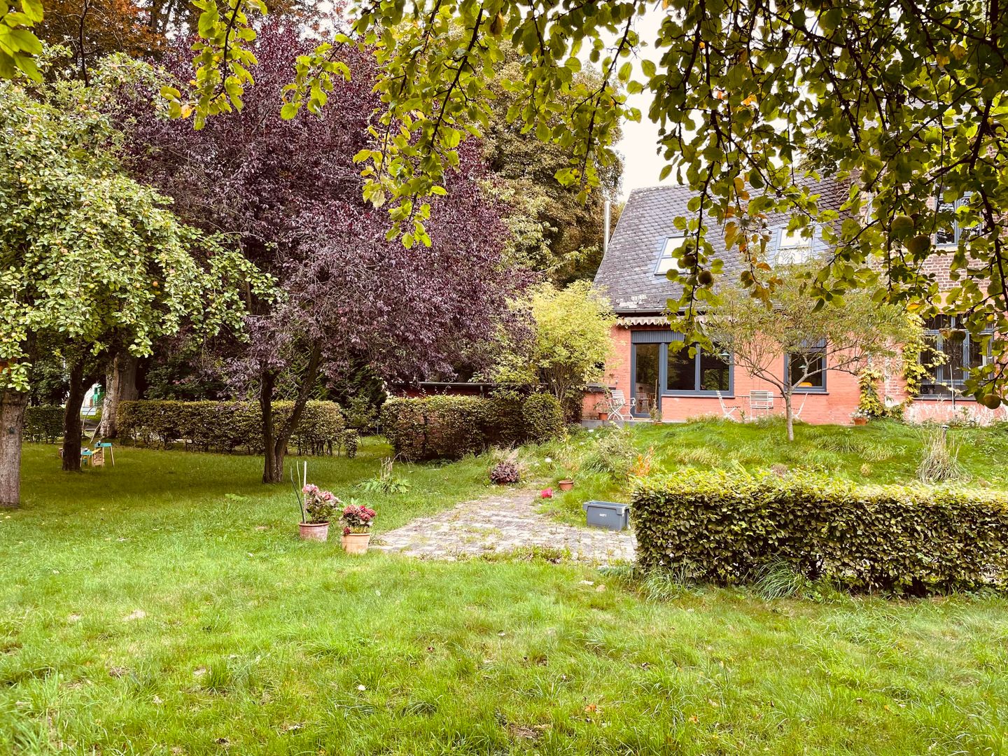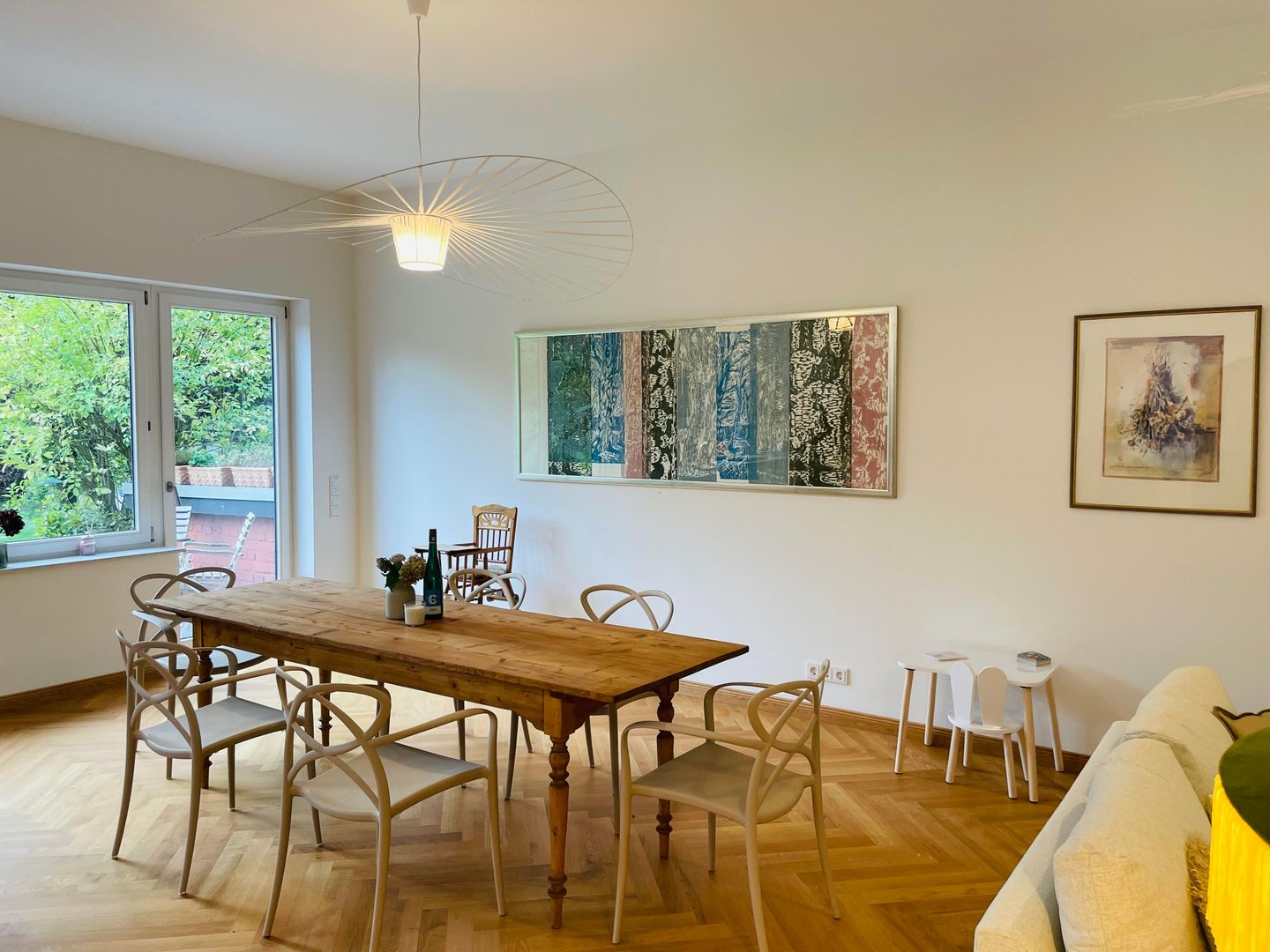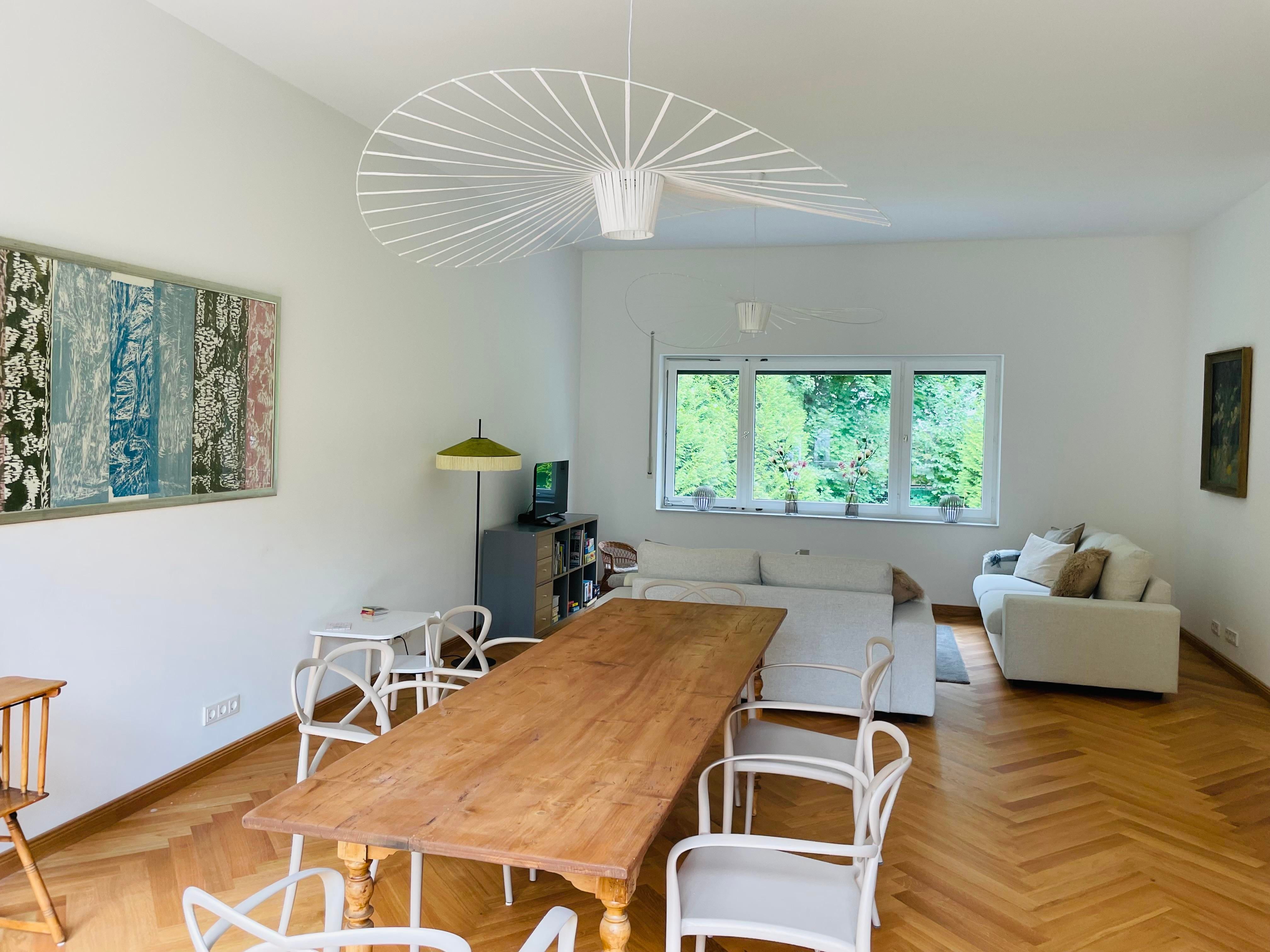 Eingebettet in die historische Atmosphäre des Hauses ist ein modernes Feriendomizil mit hochwertigem Parkettboden, Fußbodenheizung, zwei Schlafzimmern, einem lichtdurchfluteten Wohn- und Esszimmer, sowie zeitgemäßen Sanitäreinrichtungen und einer wunderschönen Terrasse mit Blick in den wilden Garten entstanden.