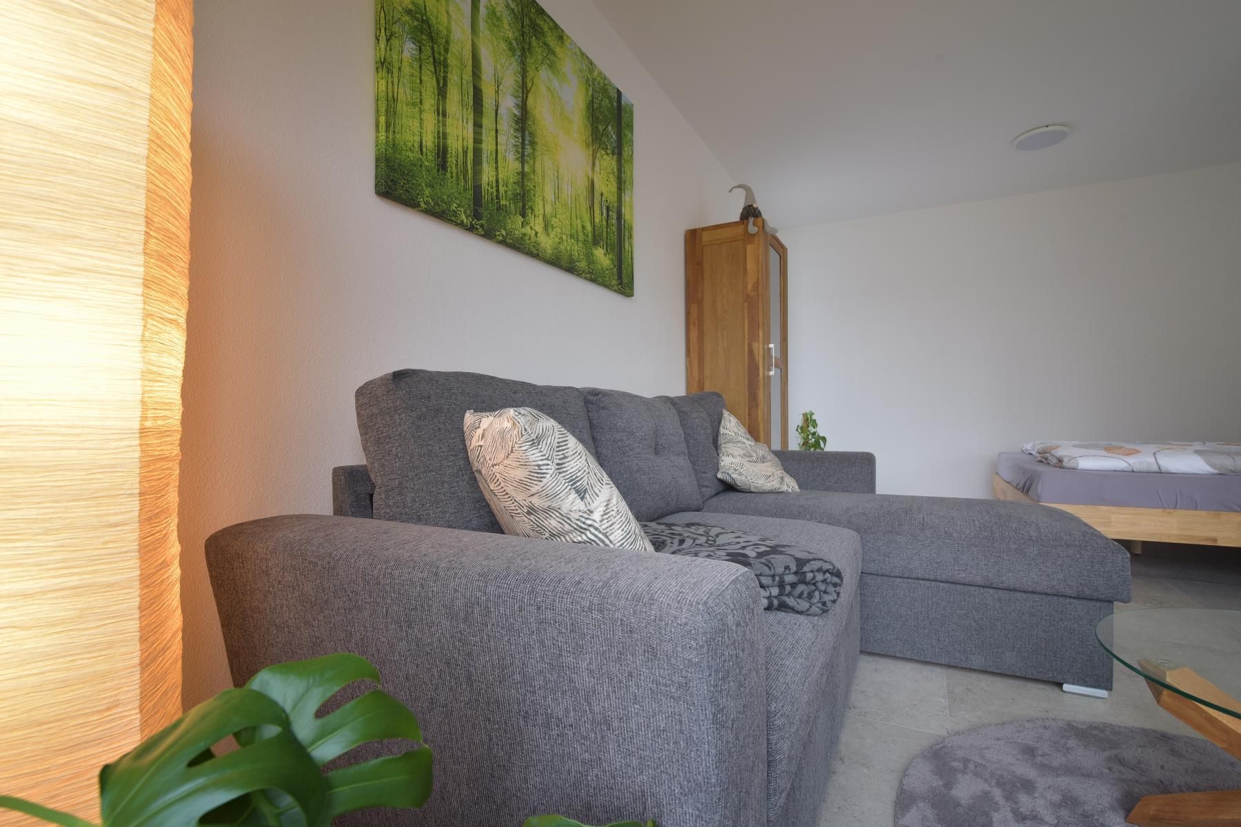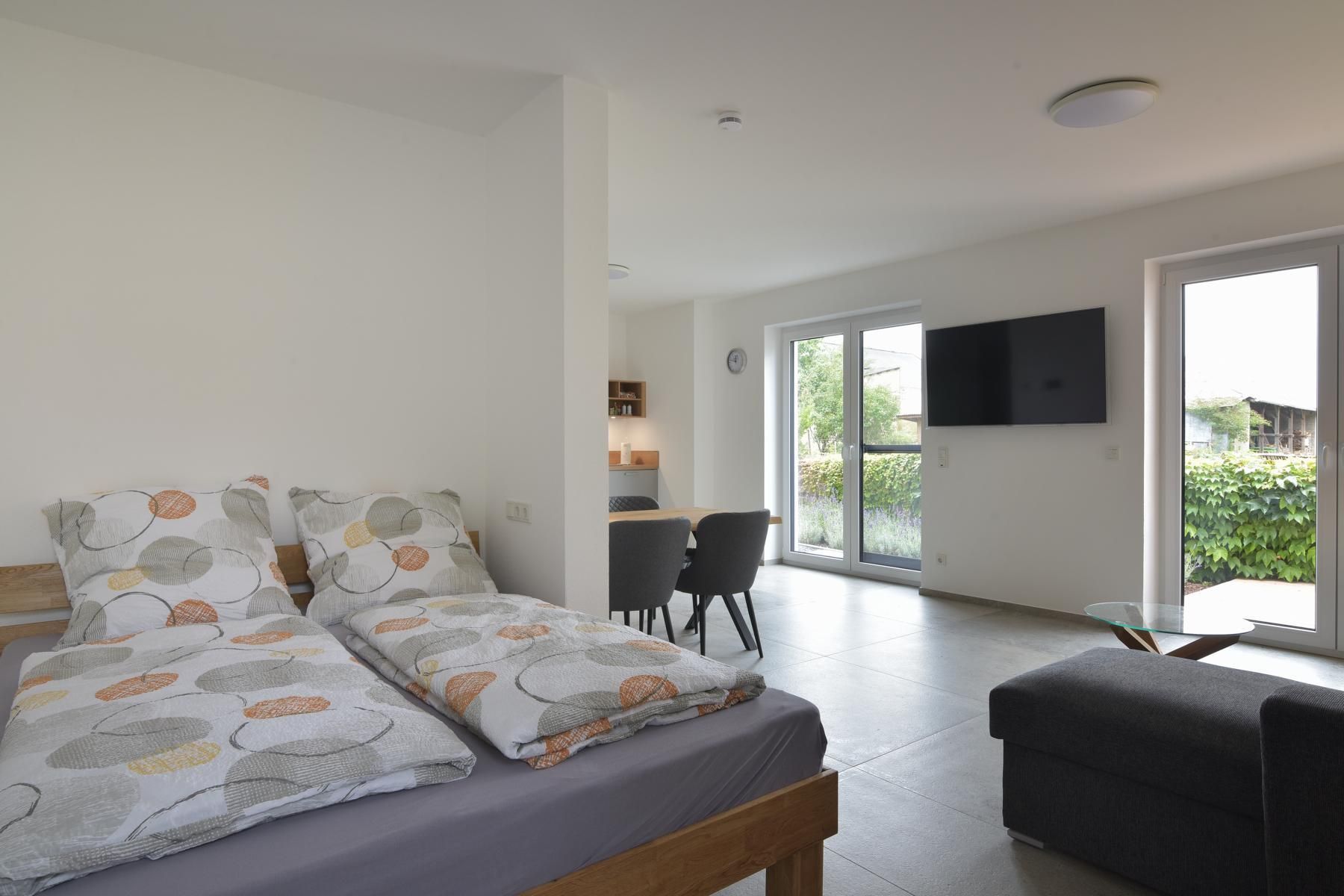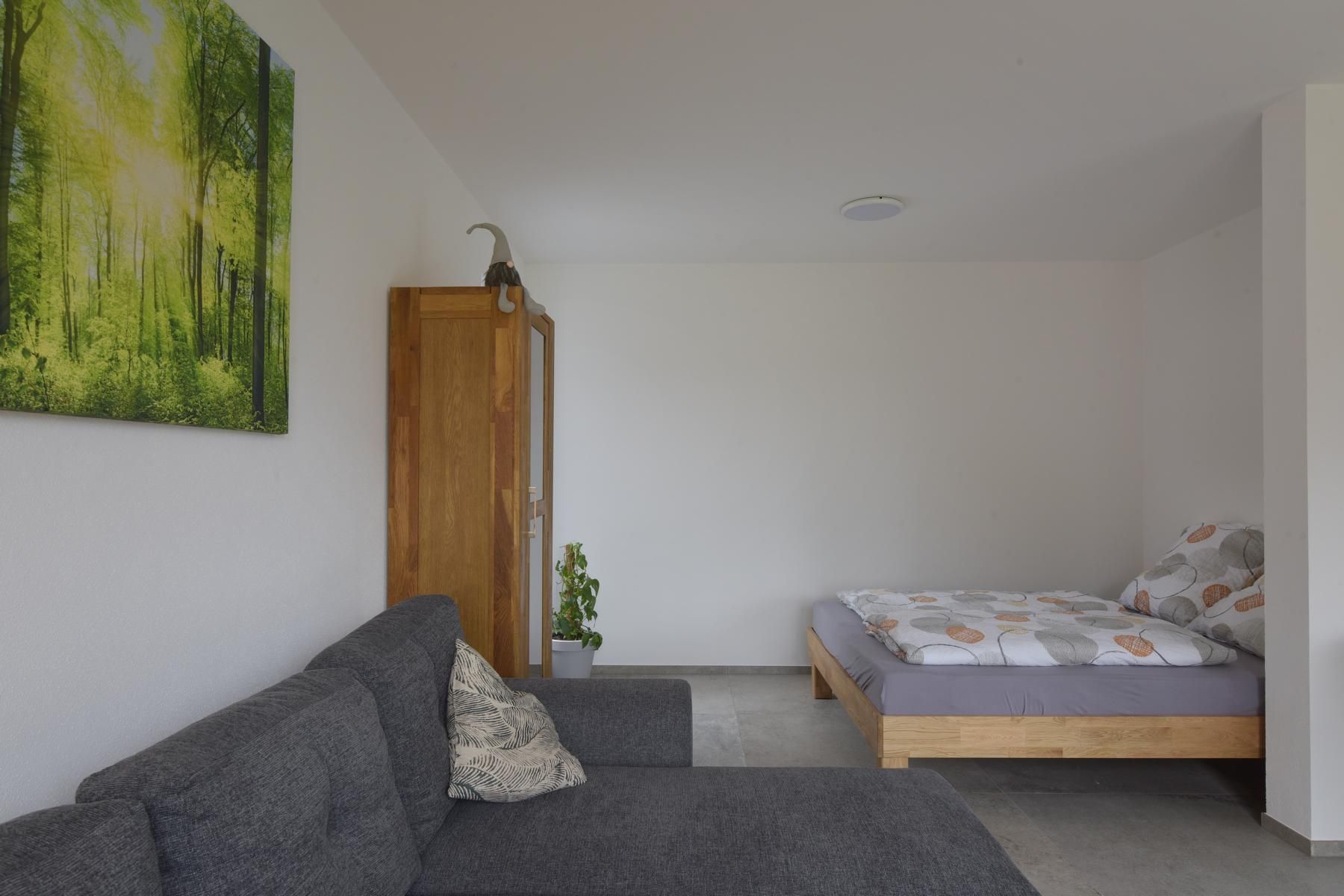 Die Hauptwohnung ist sehr großzügig offen gestaltet mit offener Wohnküche und Schlafbereich mit Doppelbett und einer Schlafcouch. Es steht ein weiterer Schlafraum zur Verfügung, welcher ebenfalls mit Doppelbett und Smart TV ausgestattet ist.