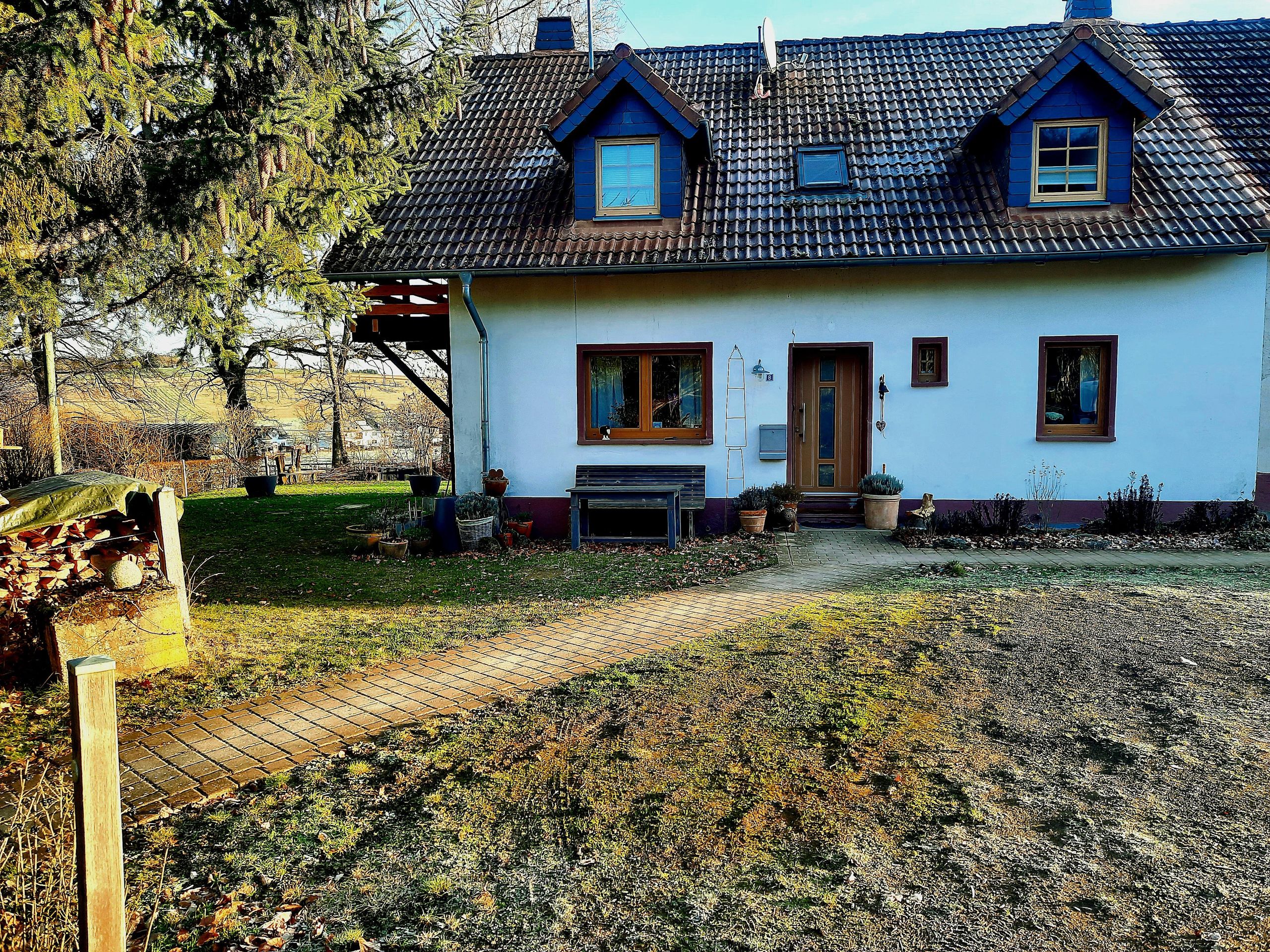 Schön gelegene FeWo am Eifelsteig, ruhige Lage an Wald und Wiese, 1. Etage , WZ m. SAT-TV, Schlafsofa, Balkon, EBK mit Mikrowelle inkl. Back- u. Grillfunktion, Esstisch, SZ mit Doppelbett, Safe vorhanden, geräumiges Bad m. Dusche