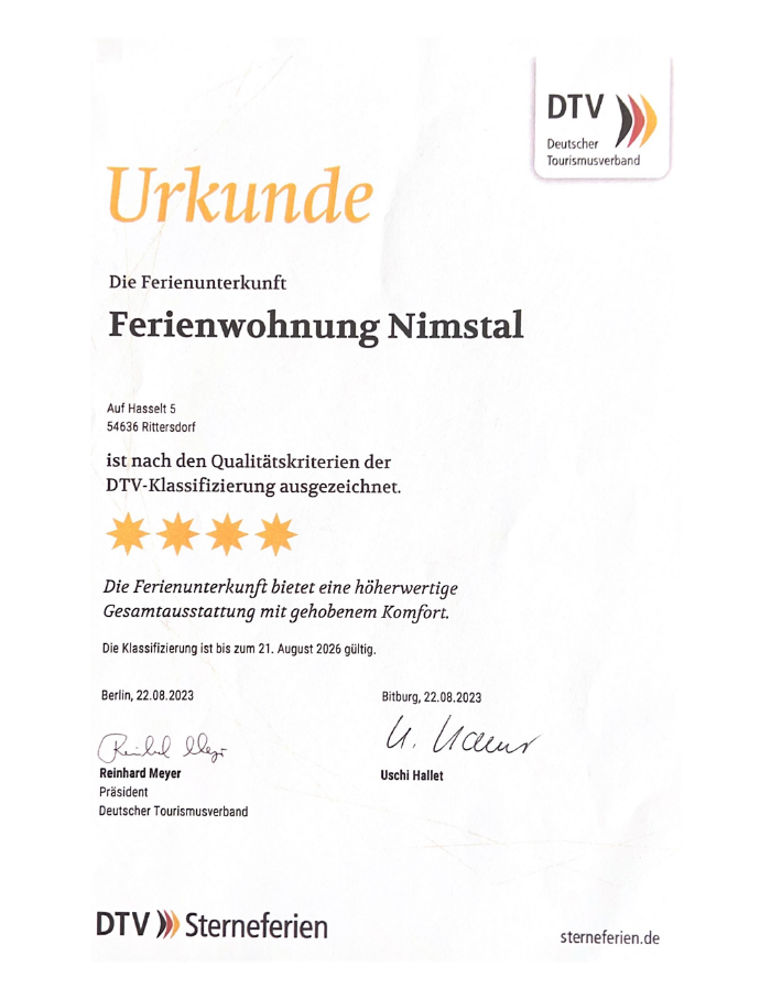 Rittersdorf liegt im Herzen des Naturparks Südeifel. Von hier aus können Sie Ihre Unternehmungen starten. Ob als Wanderfreund oder Radfahrer. Der Fahrrad- und Wanderweg startet direkt vor der Haustüre. Sie haben einen wunderschönen Blick ins Nimstal und können die Natur genießen. Unsere sonnige Terasse lädt Sie zum Verweilen mit Blick in die Natur ein. Viele Ausflugsziele können Sie von Rittersdorf aus bequem erreichen. Beispielsweise den Stausee Bitburg, den Eifelpark Wild und Freizeitpark Gondorf, die Irreler Wasserfälle sowie den Dinosaurierpark und das Naturparkzentrum Teufelsschlucht in Ernzen, Trier- die älteste Stadt Deutschlands, das malerische Echternach (Luxemburg) das schöne Städtchen Bernkastel an der Mosel, die Maare bei Daun und vieles mehr. Wunderschöne Landschaften, viel Natur, ein gutes Freizeitangebot und tolle Sehenswürdigkeiten - das ist Urlaub in der Südeifel!