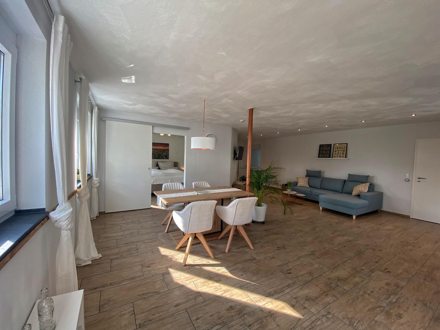 Die im Jahr 2021 neu errichtete Wohnung bietet auf 75 m² einen offenen Koch-/Wohn-/Essbereich, ein Schlafzimmer mit großem Boxspringbett und ein modernes Bad.