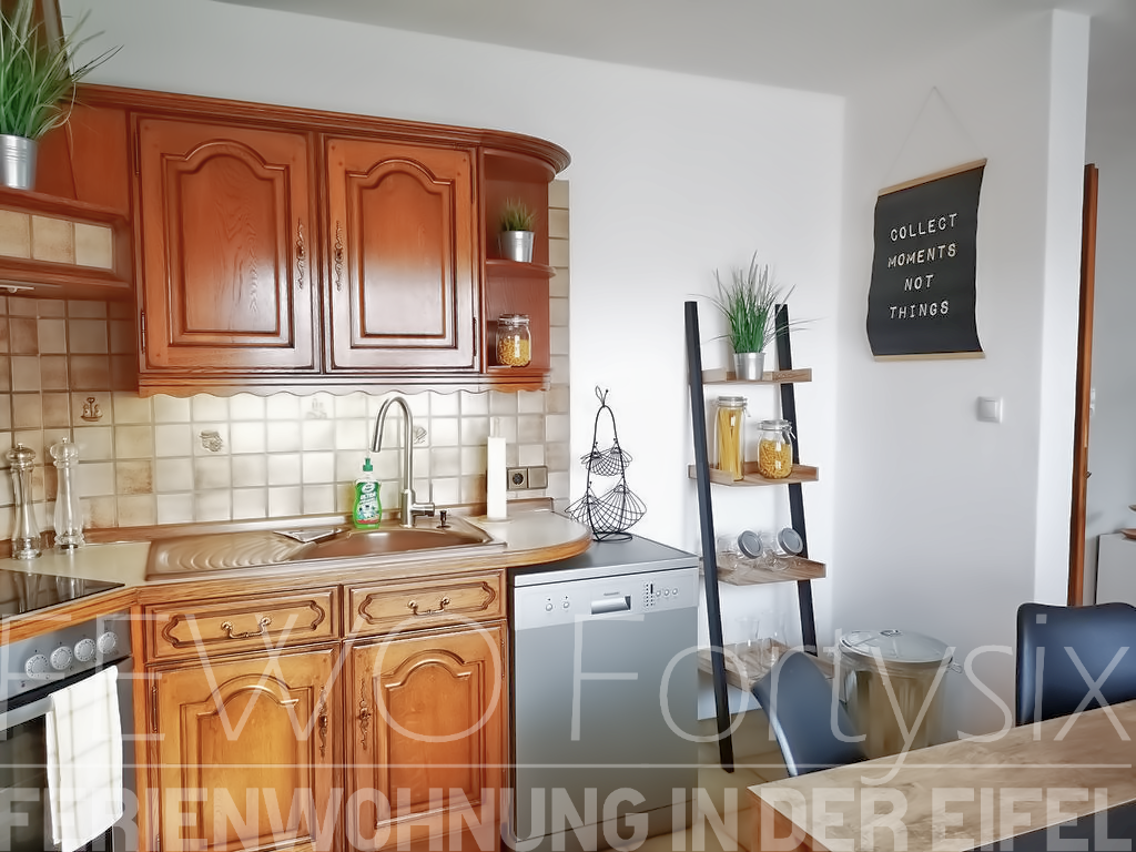 In der Ferienwohnung finden Sie das offen gehaltene Wohnzimmer mit edlem Par-kett und modernen Aktzenten, das direkt an die rustikale und massive Küche ange-bunden ist. Die räumliche Verbindung von Wohnzimmer und Küche lädt zur gesel-ligen Runde in entspannter Atmosphäre ein.