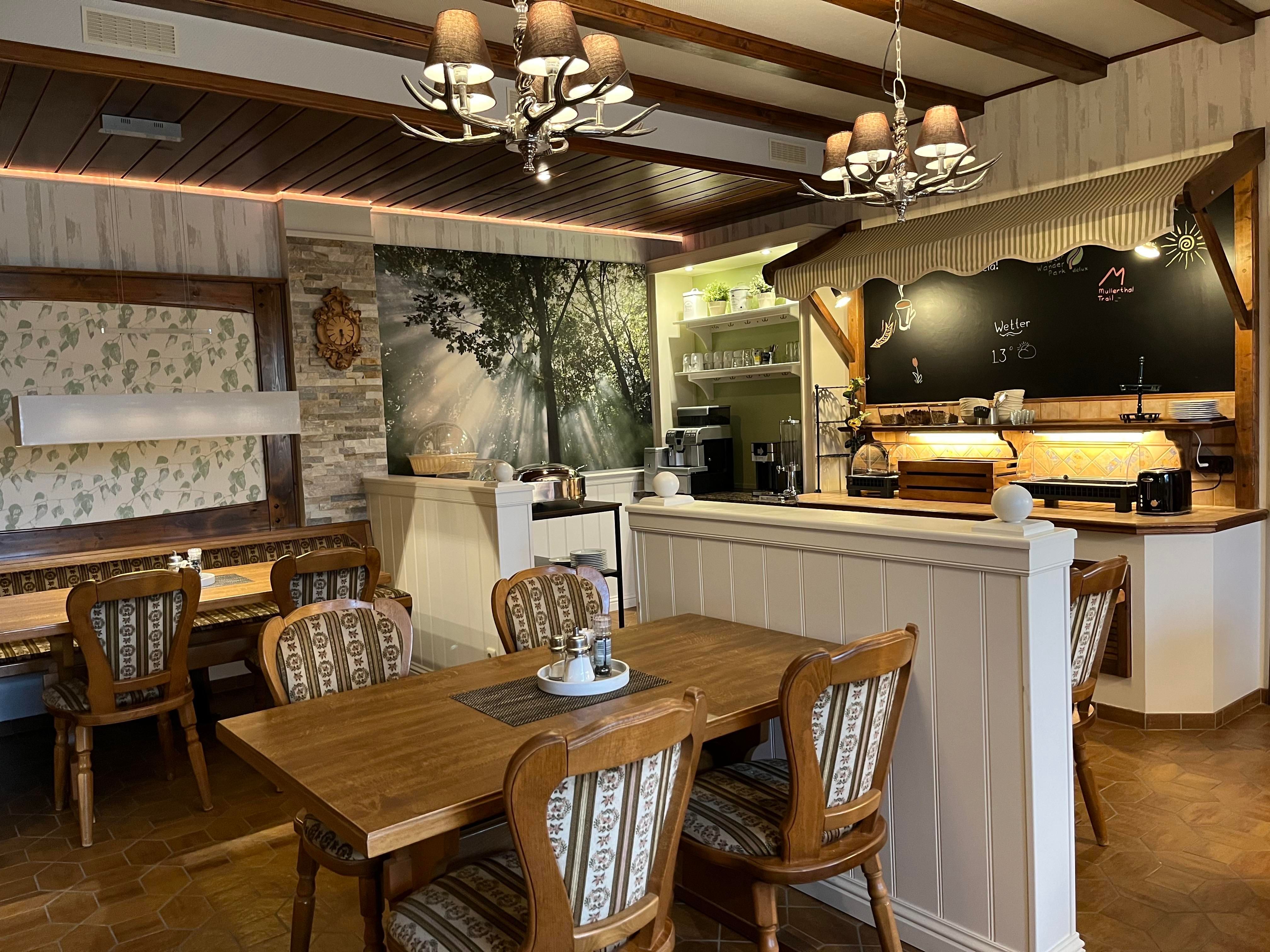 Fühlen Sie sich wie Zuhause in familiärer Atmosphäre. Entspannen Sie im gemütlichen Gastraum oder auf der Gartenterrasse(Getränkeservice Saisonbedingt mit variable Öffnungszeiten zwischen 16.00 und 20.00 Uhr, außer Montags).