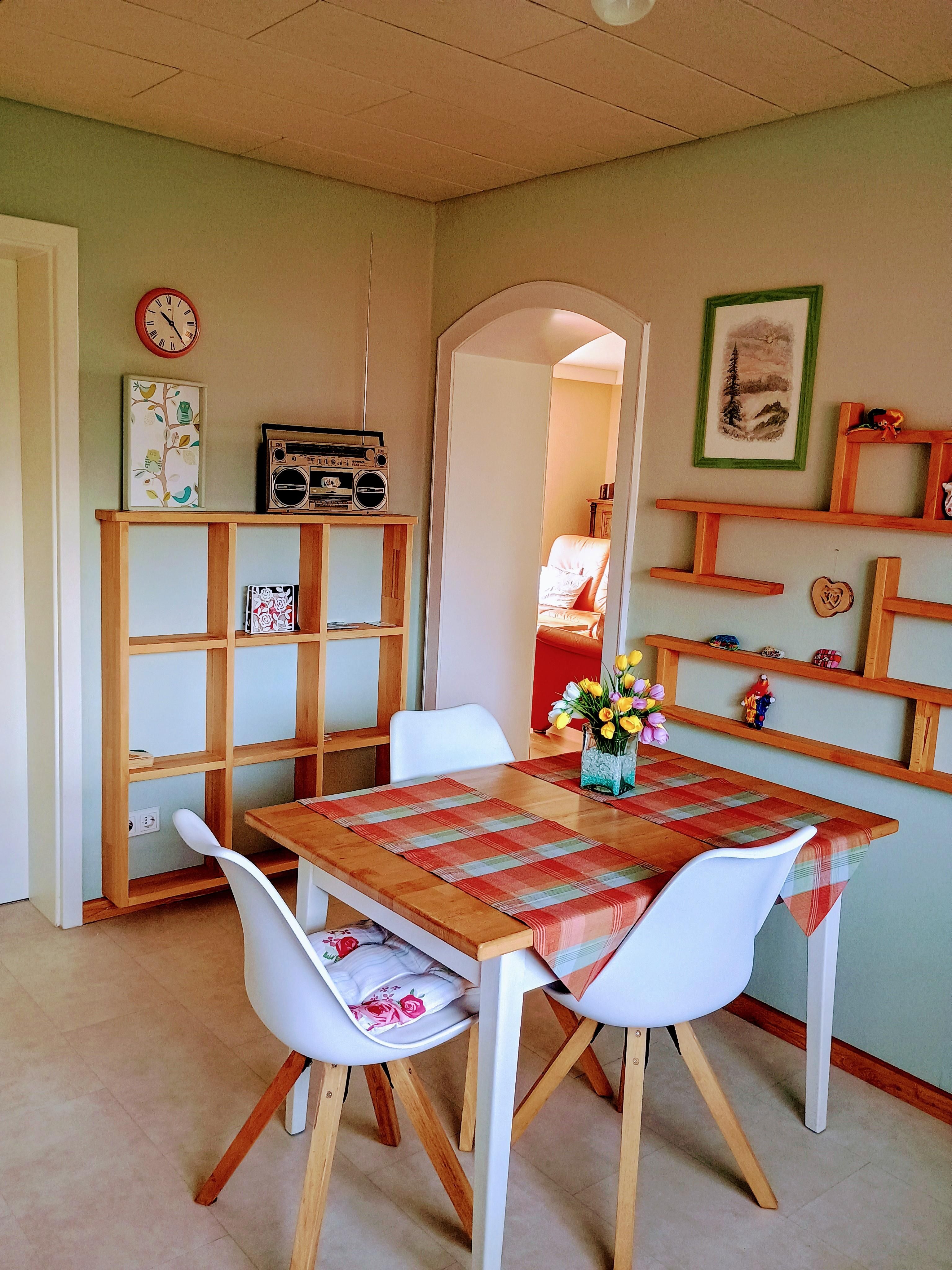 Unsere Ferienwohnung liegt im Erdgeschoß, ist ca. 79 m² groß und verfügt über einen großen Wohnraum mit TV und Stereoanlage und freier Sicht in den Garten, und einer separaten Leseecke , mit Tisch und Leselampe. Gratis W-LAN steht Ihnen selbstverständlich zur Verfügung.