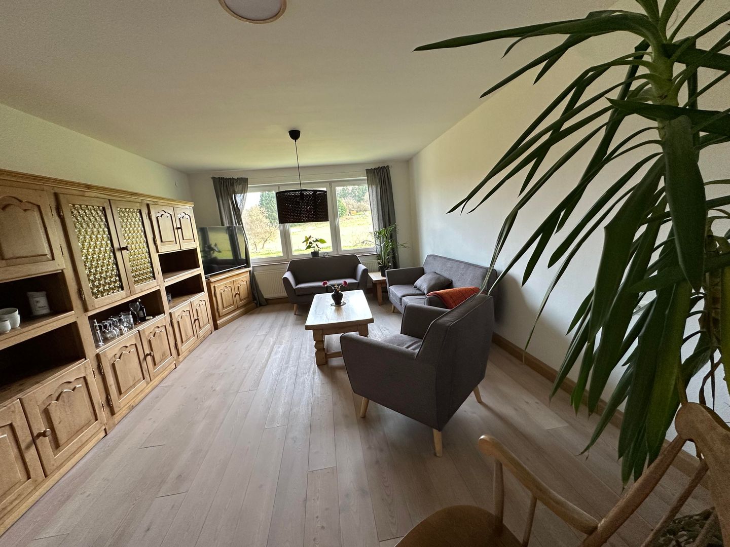 Im großen Wohnhzimmer steht ein SmartTv.