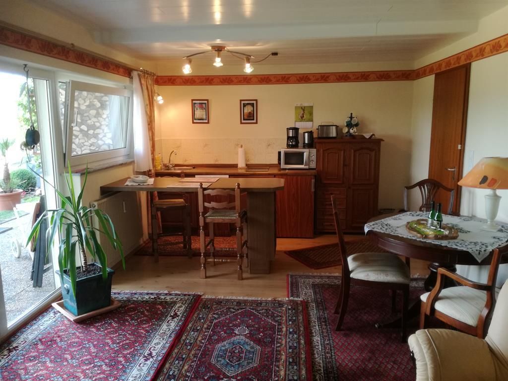 Es erwartet Sie eine schöne, gemütliche, separate, ebenerdiger Eingang und komfortable Ferienwohnung für 2 Personen. Die Ferienwohnung ist ruhig am Ortsrand gelegen, von welcher aus Sie einen schönen Fernblick genießen können. Es gibt eine Terrasse, Liegewiese in Südwestlage und einen großen Parkplatz.