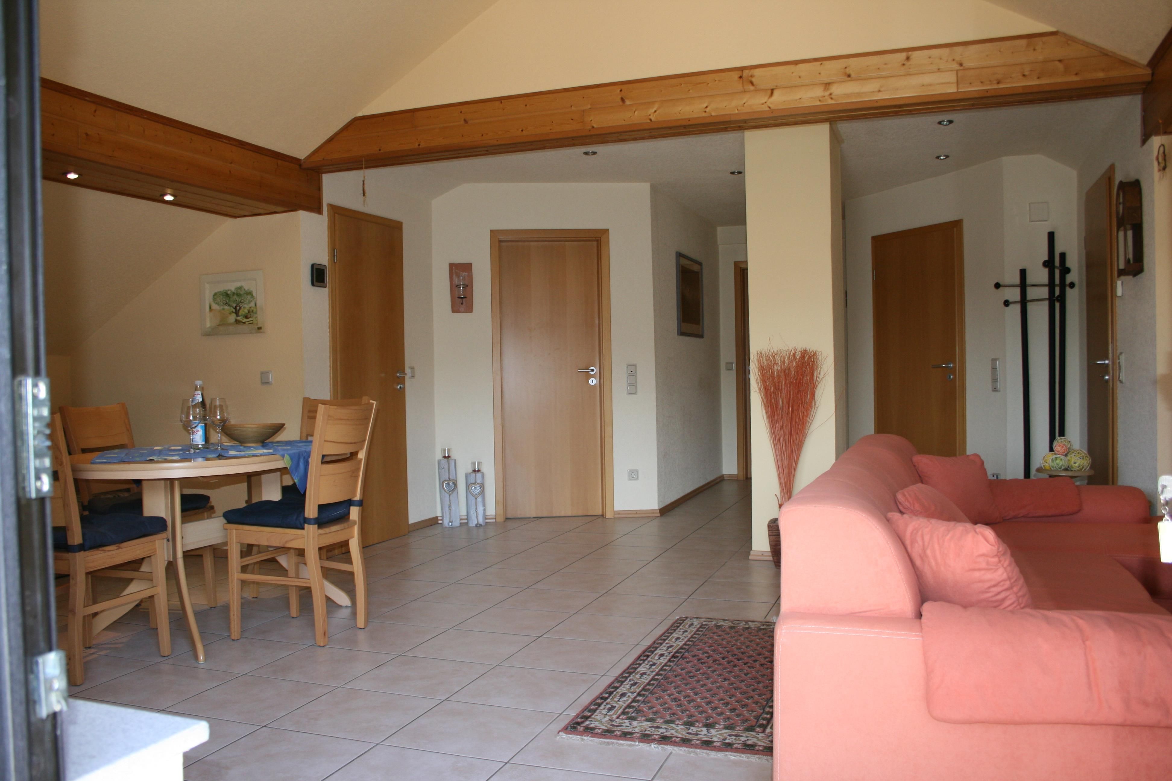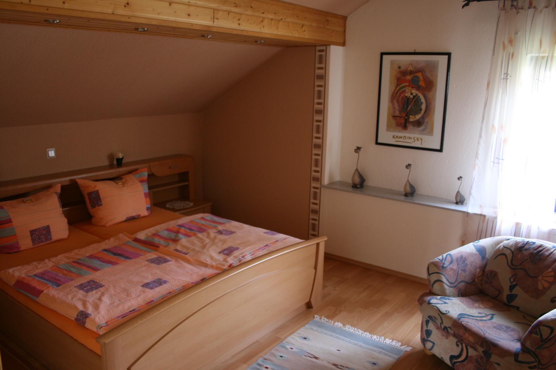 Die Ferienwohnung befindet sich im Dachgeschoss und verfügt über ein Schlafzimmer, ein Badezimmer und ein Wohnzimmer mit Küche. Im Wohnzimmer gibt es zusätzlich 2 Schlafsofas.