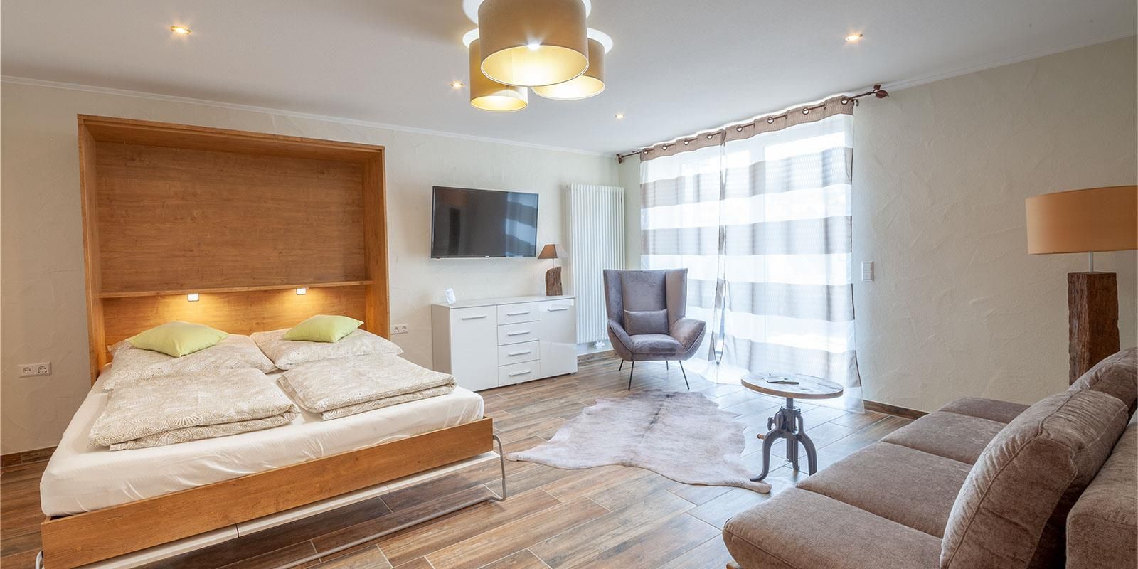Drei geräumige Wohnungen im modernen Landhausstilmit großzügigem Ausblick auf das Schalkenmehrener Maar.